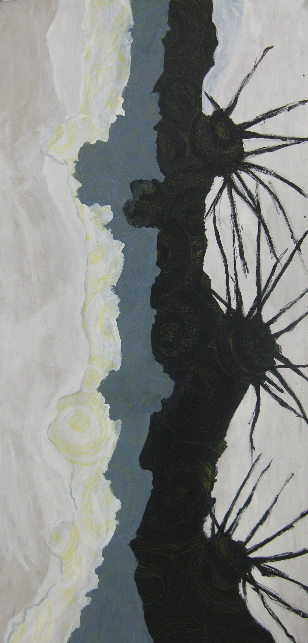 Boomstam Tree Zwart Wit Geel Treebark Boomschors Silhouet Acryl Acrylic Neocolor Black White Yellow