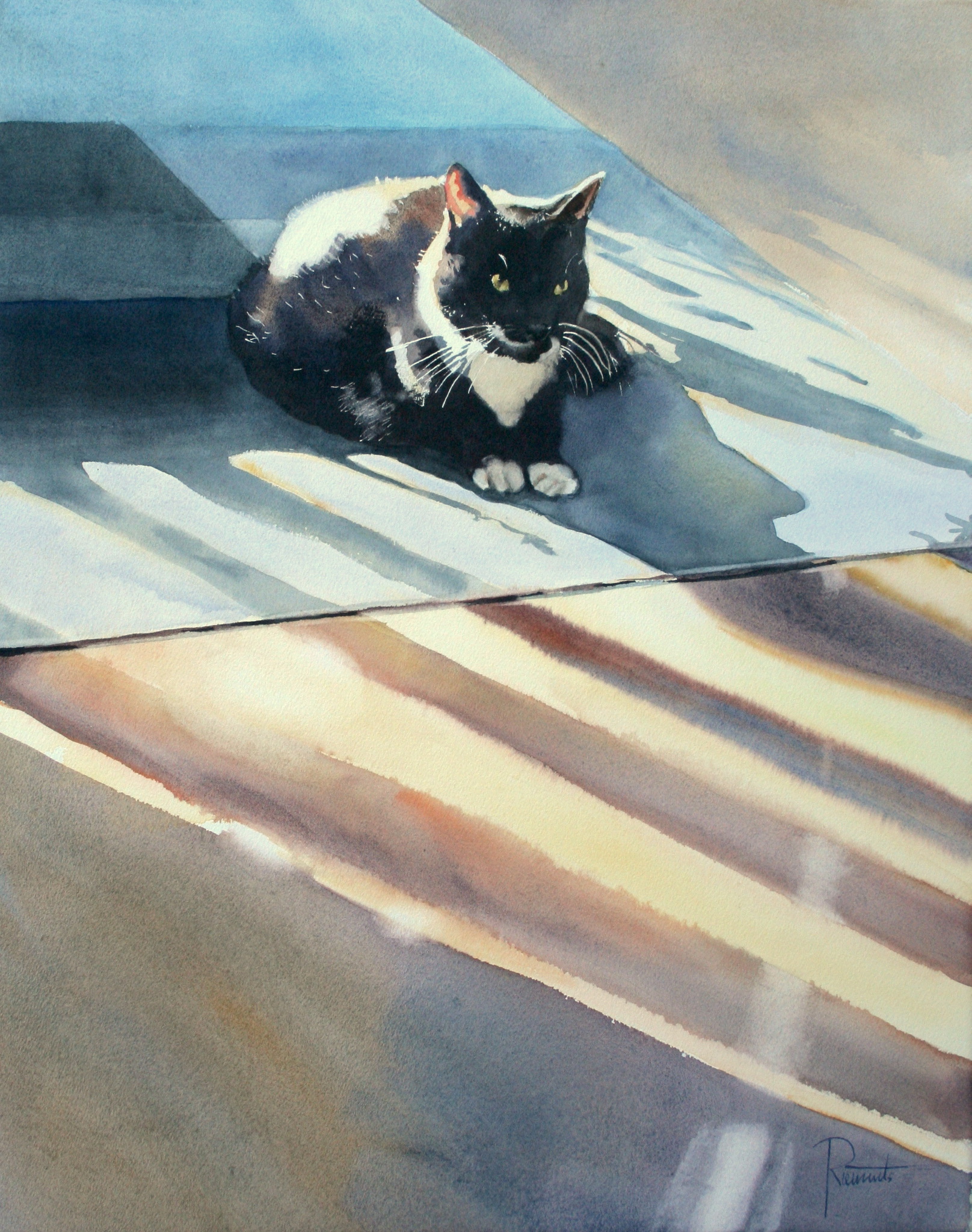Kat Aquarel Cat Contrast Zonlicht Shadows Sunny Kattenleven