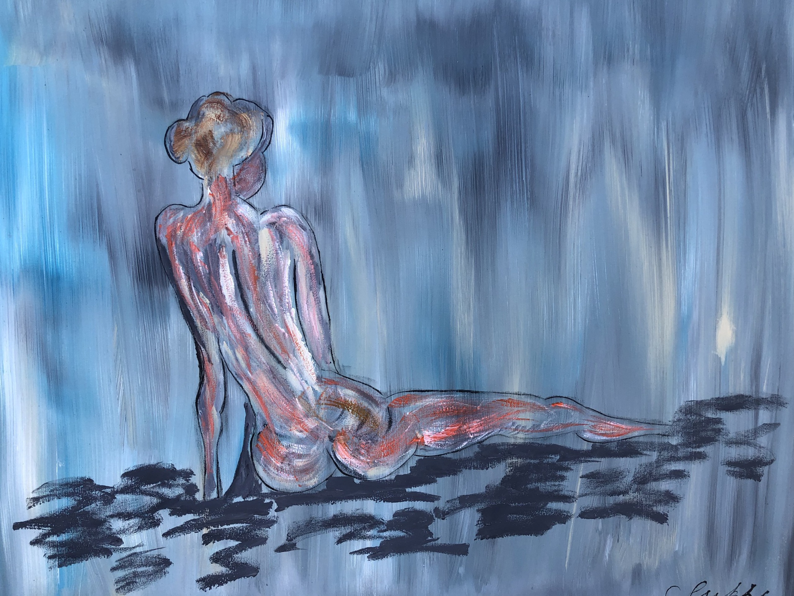 Zee Blauw Vrouw Naakt