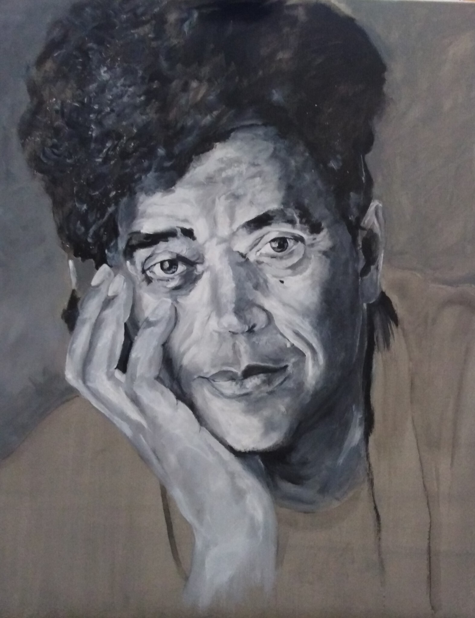 Jean Bosco Safari - Belgische zanger/songwriter/muzikant - (°Rwanda 1954) Voor deelname Kop Op-veiling Rode Neuzen-dag 2020. Getekend en geschilderd naar foto Bart Meeus.