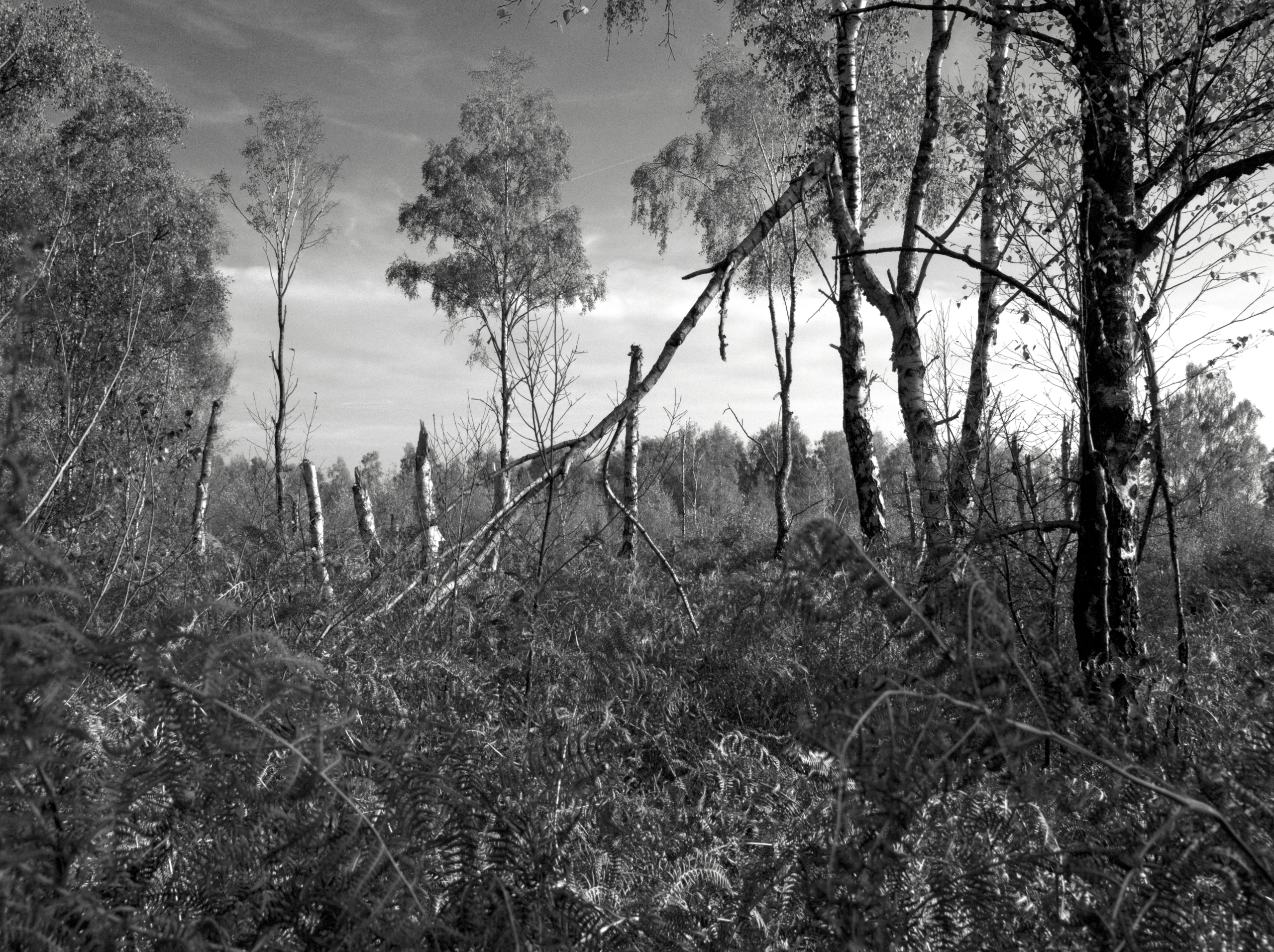 Landschap Natuur Aamsveen Twente Enschede Najaar Herfst Storm Herfststorm Zwart-wit Boom Bomen Stormschade Mysterieus Zon Licht Natuurgebied Bos Vegetatie Kerst Natuurgeweld