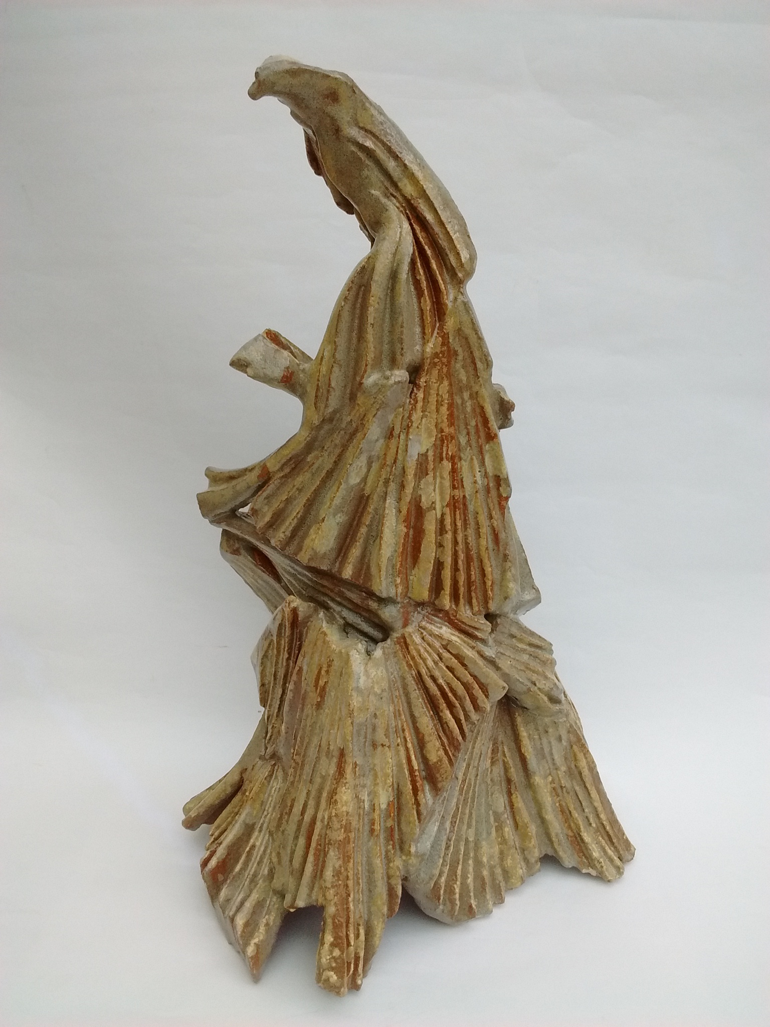 Zoektocht in keramiek: vrouwzijn in vloeiende lijnen en contouren; hoge dunne vaasvormen als weerspiegeling van een zoektocht naar identiteit...