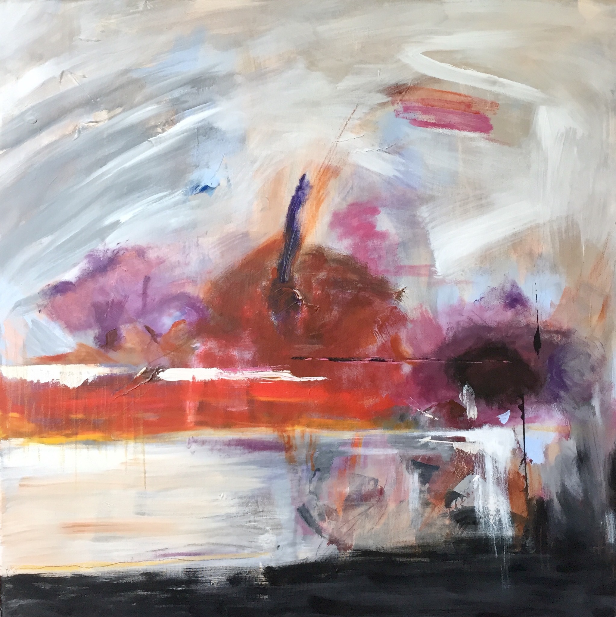 Abstract landschap 80x80cm. Kleurrijk en echt opvallend