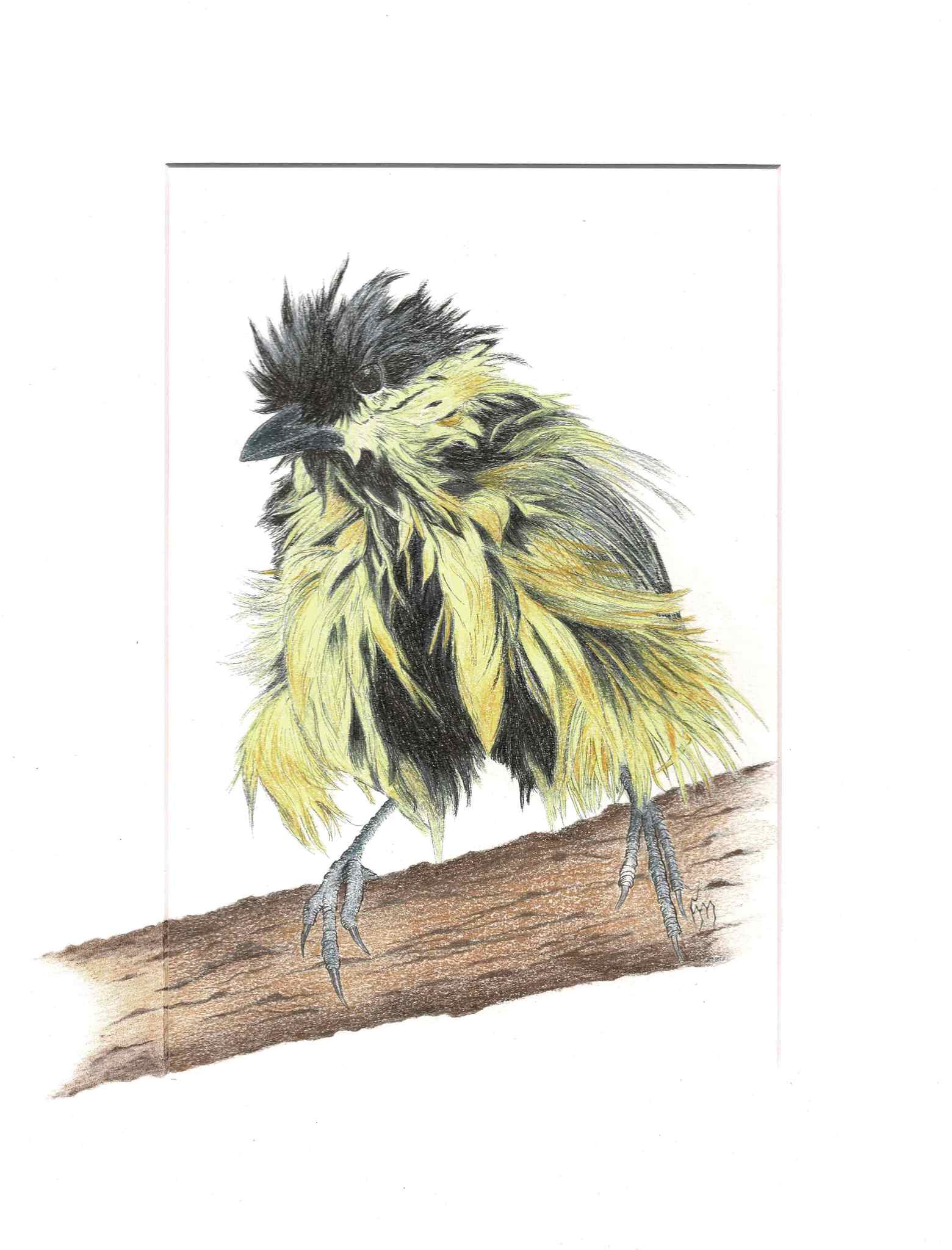 Originele pentekening met uitgewerkte passe-partout van een koolmeesje. Incl. mooie bijpassende lijst. Met dank aan natuurfotografe Anita Kortus