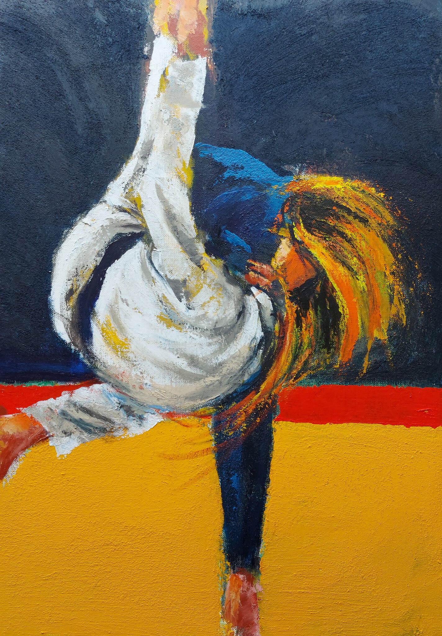 Acryl Vrouw Vuur Vurig Fel Gevecht Judo Judoka