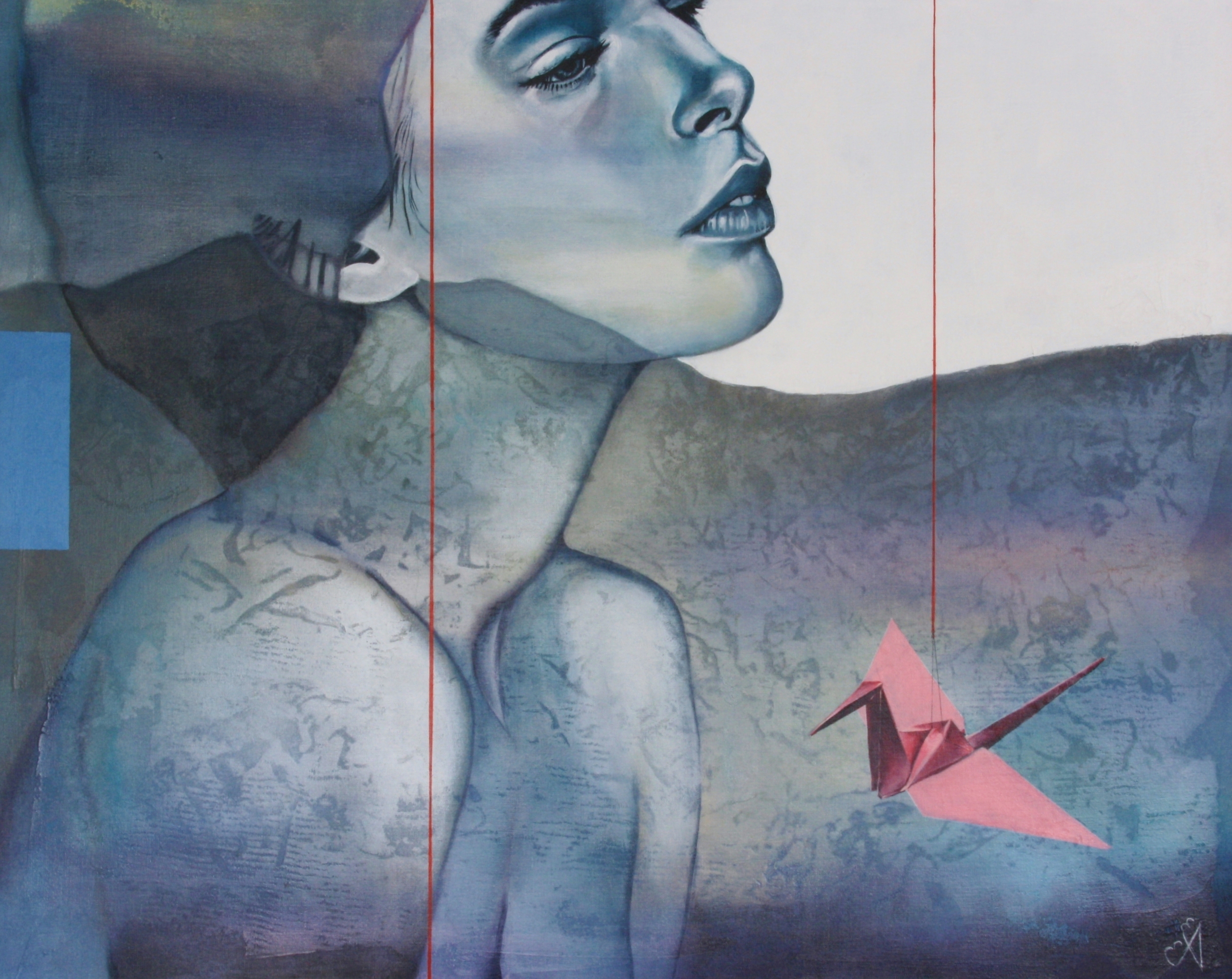 Landschap Blauw Rose Vogel Portret Blue Huid Portrait Dromen Dreams Landscape Bird Pink Kraanvogel Skin Breekbaar Fragile Crane Origami