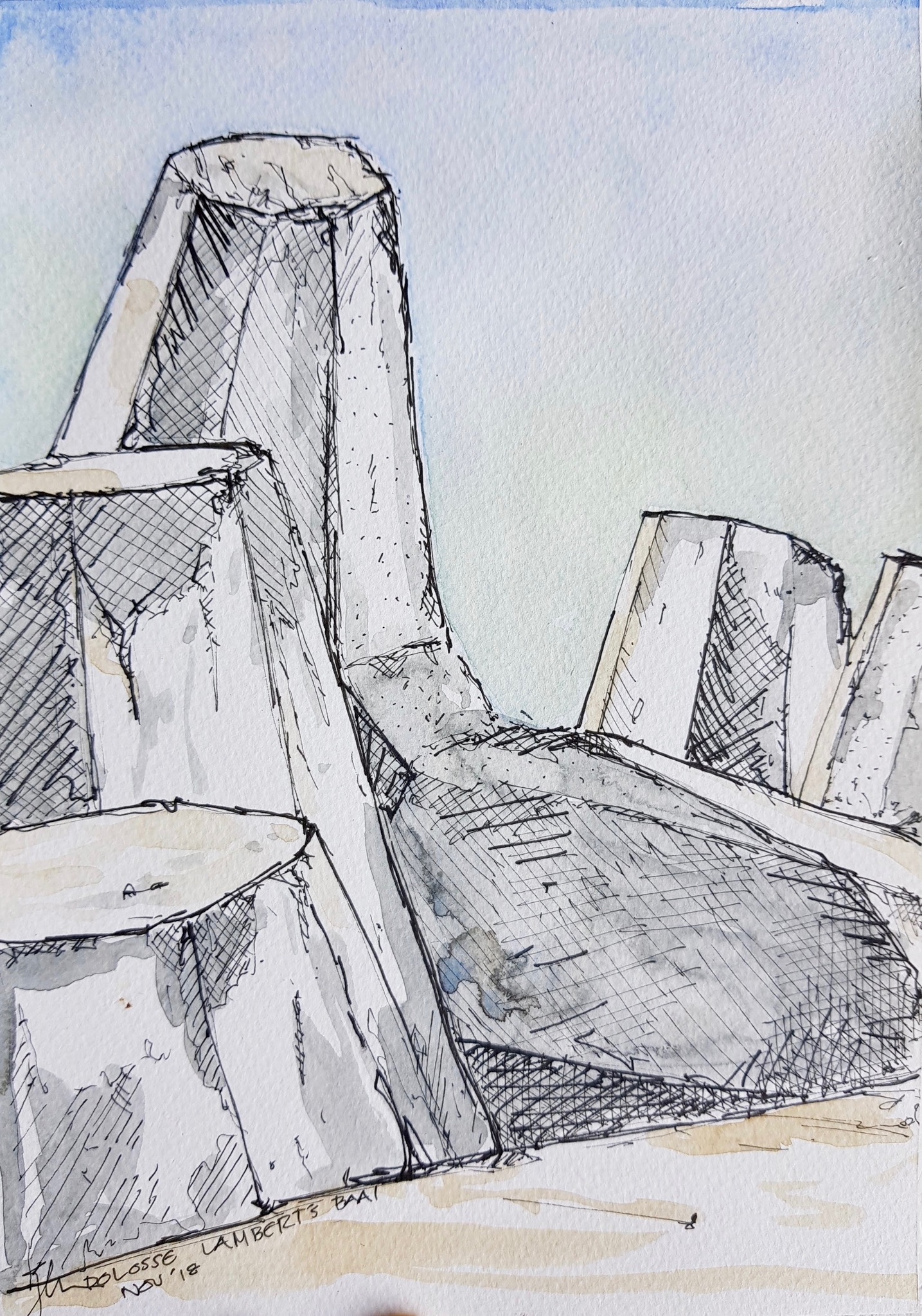 Massieve betonnen vormen die ontworpen zijn om de zee in bedwang te houden. Een Zuid-Afrikaans ontwerp met een Zuid-Afrikaanse naam!