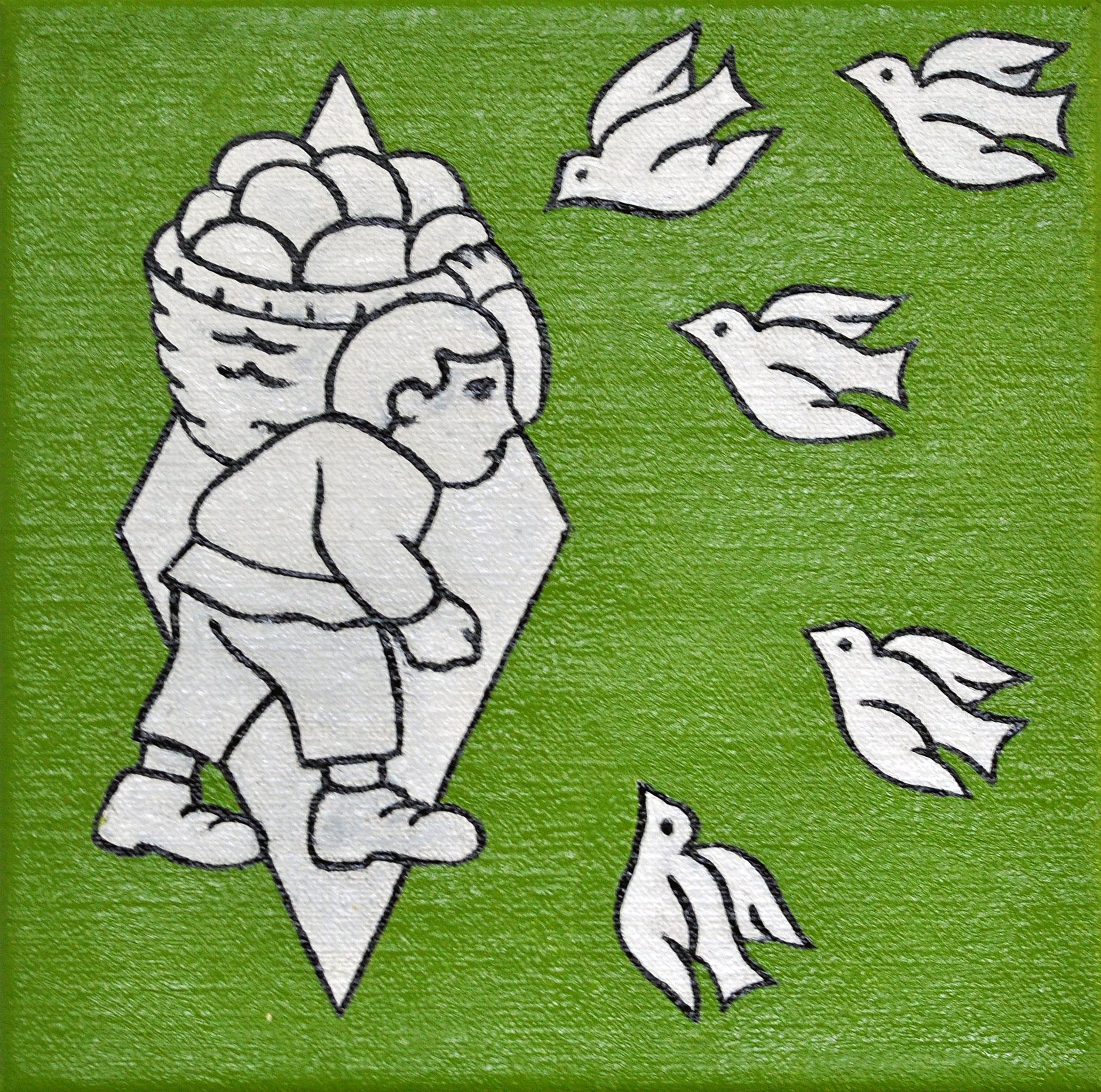 Wit Zwart Groen Vierkant Tekening Boer Surreëel Vogels Beeldspraak Bolletje Brood Bolletjes Reclame Ruit Bakker Beeldtaal