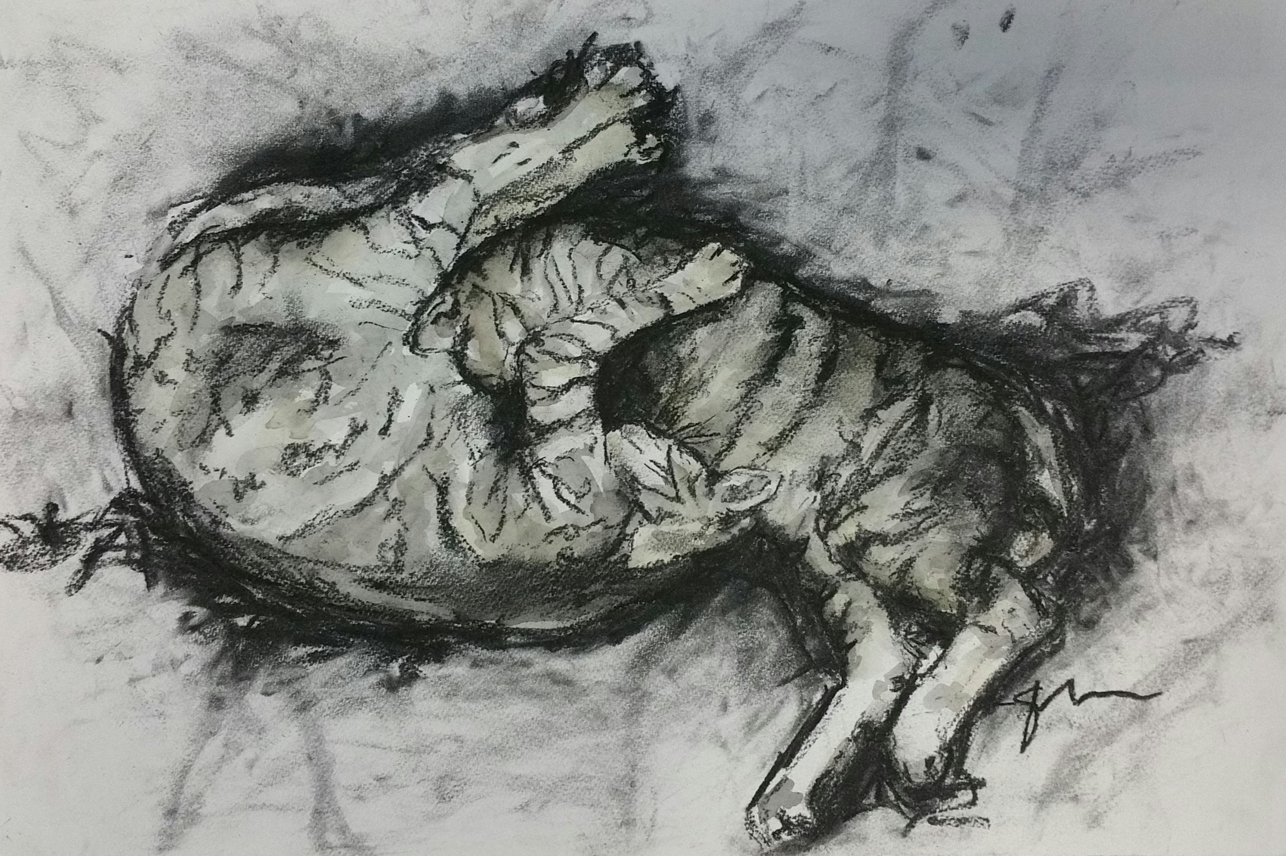 Een broer en zus die samen opgroeien en van de knuffel houden. Twee zijn warmer dan één. Aquarelle, houtskool Gemonteer