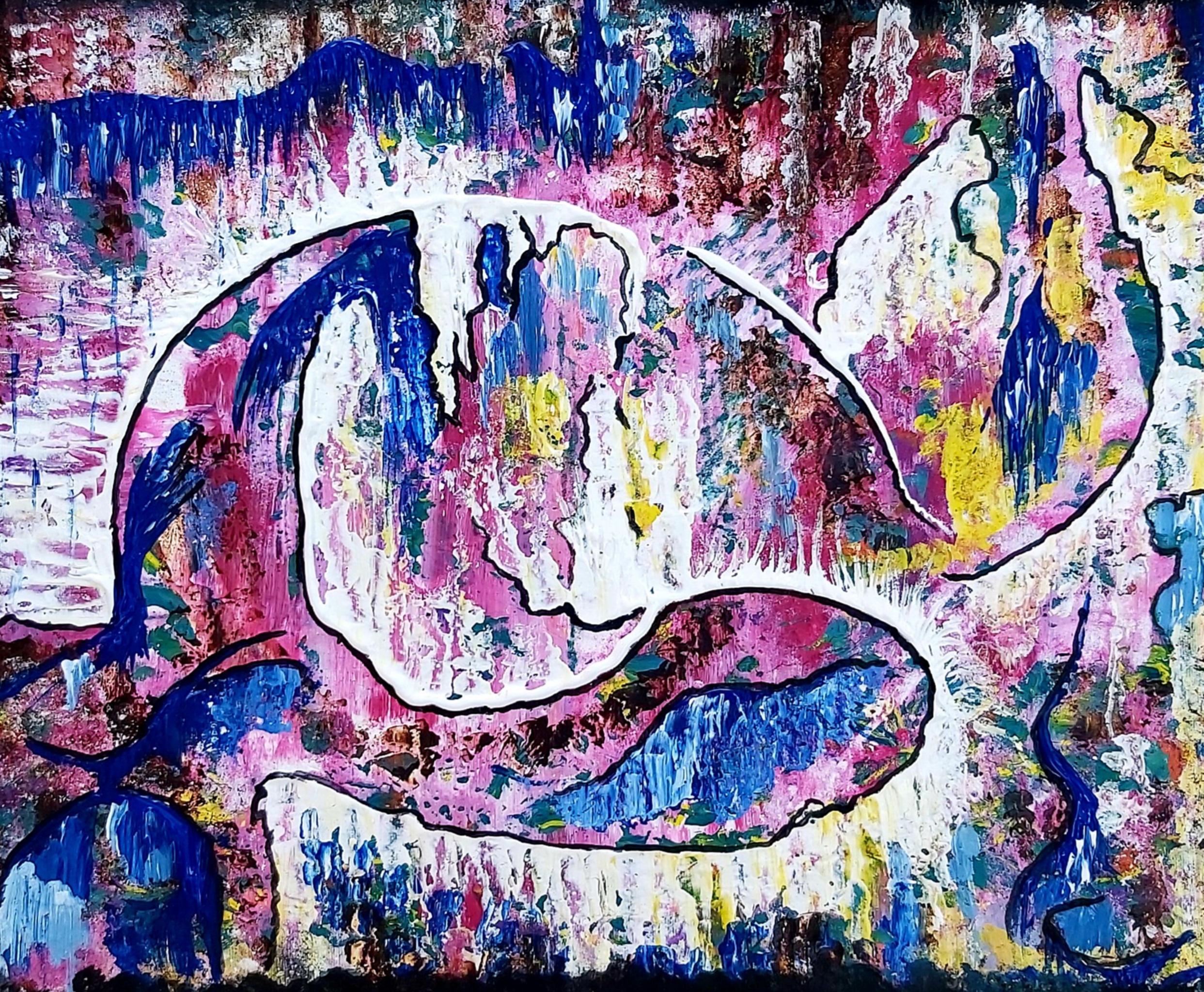 Door deze moeilijke periode was de inspiratie anders dan normaal. Om er doorheen te komen was schilderen een uitvlycht Er zijn copieen te koop 120x80x2 op canvasdoek geprint