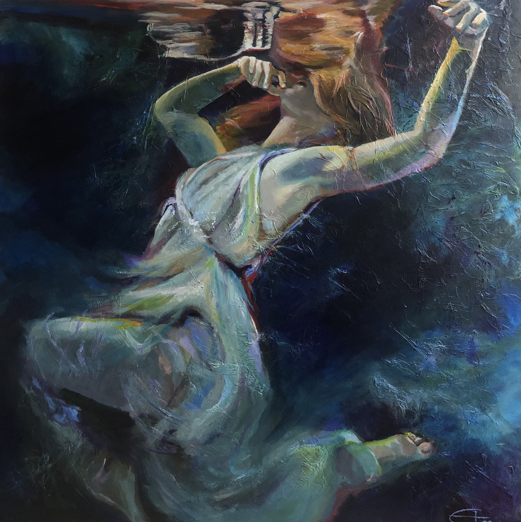 Schilderij Acryl Spiritueel Water Figuur Turbulent