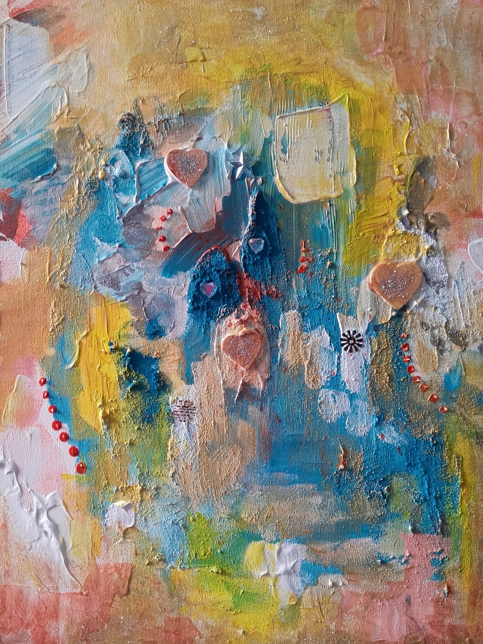 Geel Acryl Yellow Mixed Media Canvas Hartjes Hilversum Hearts Workshops