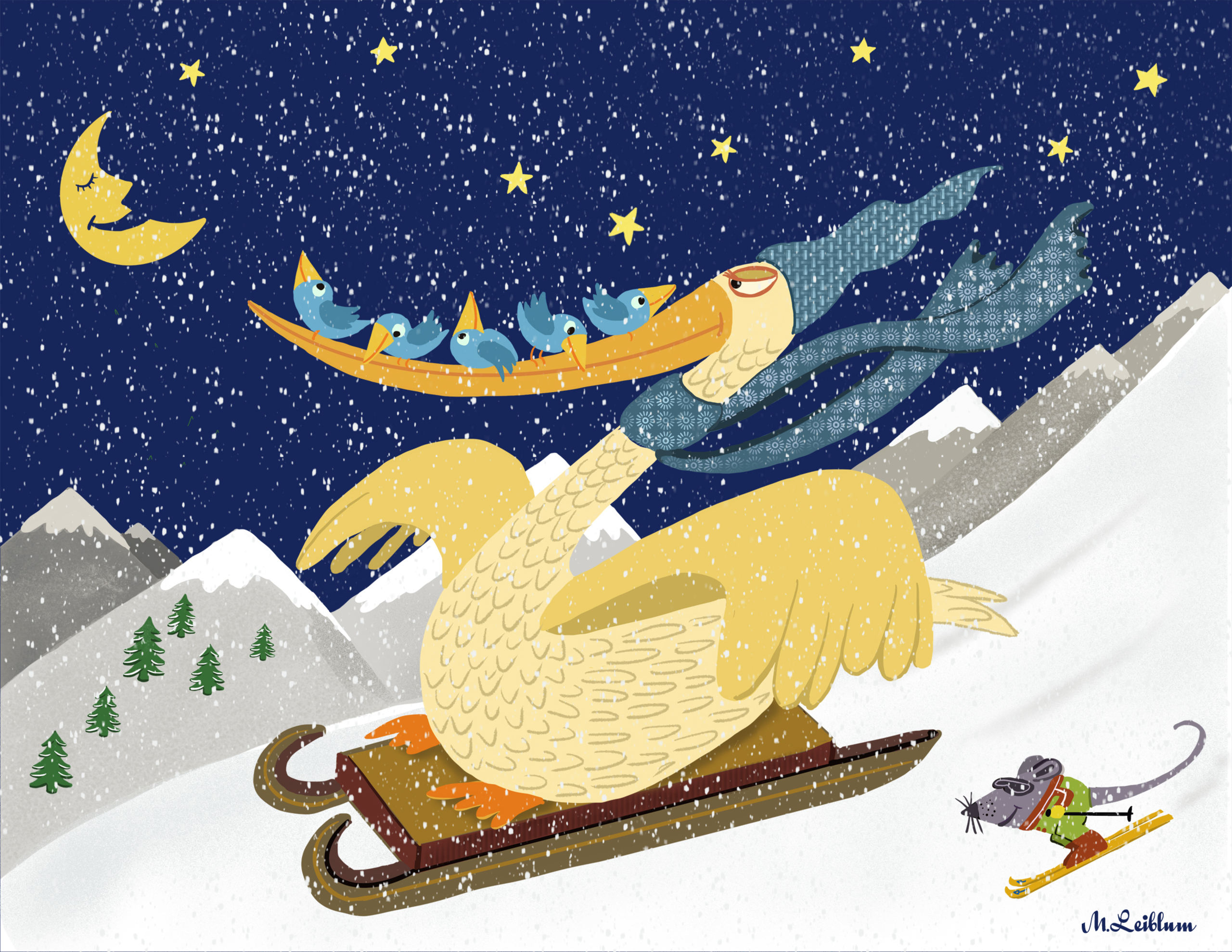 Wenskaart Kerst Nieuwjaar Gelukkig Beste Wensen Vrolijk Humor Illustratie Kleurrijk Winters Grappig Dieren Vogels
