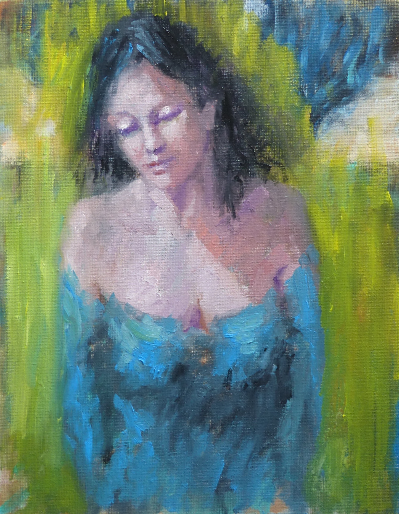 Figuratief Blauw Vrouw Model Jonge Impressionisme Hedendaags Elle