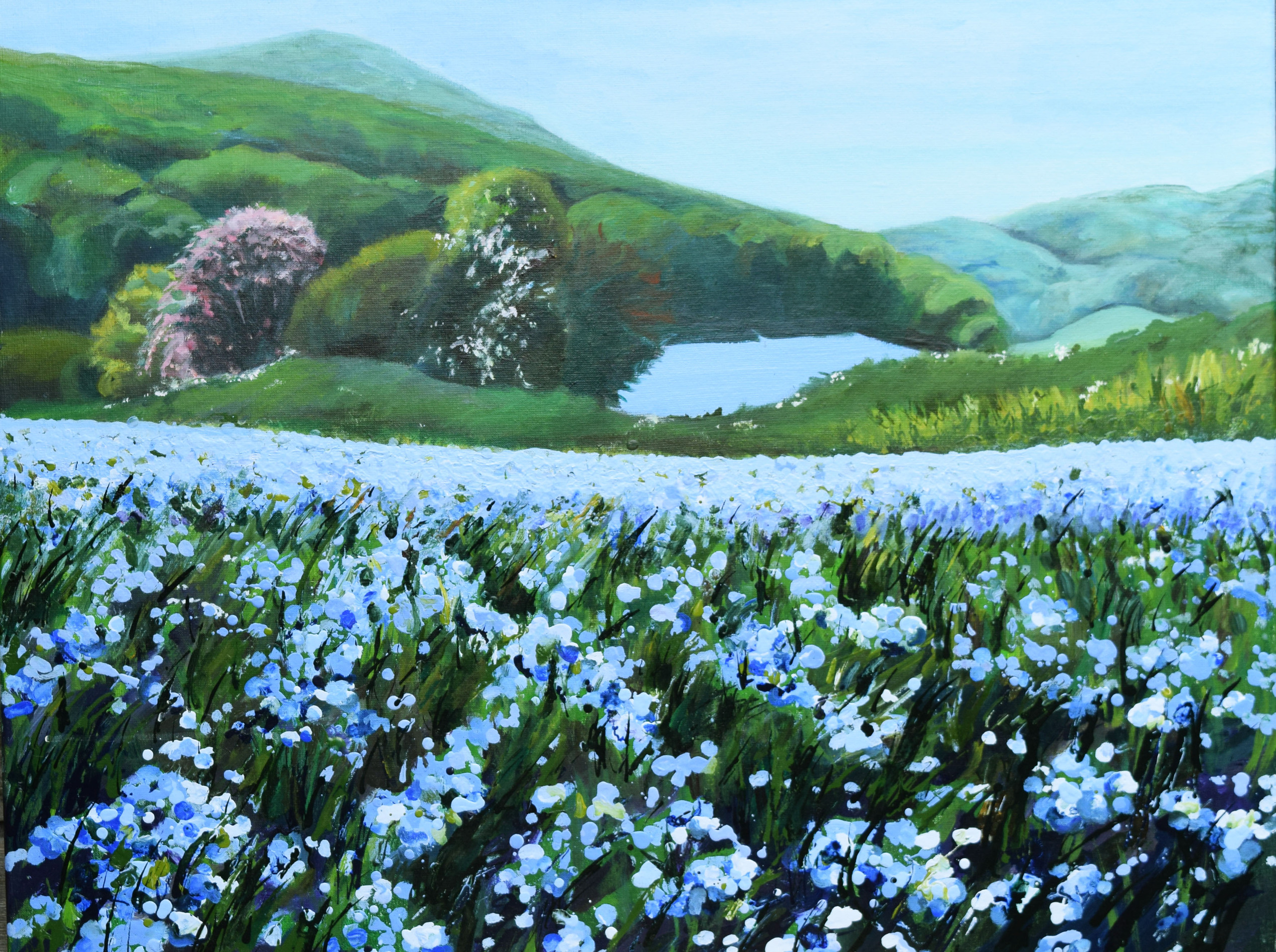 surrealistische sfeer van blauwe lijnzaddvelden rondom bignori n west sussex