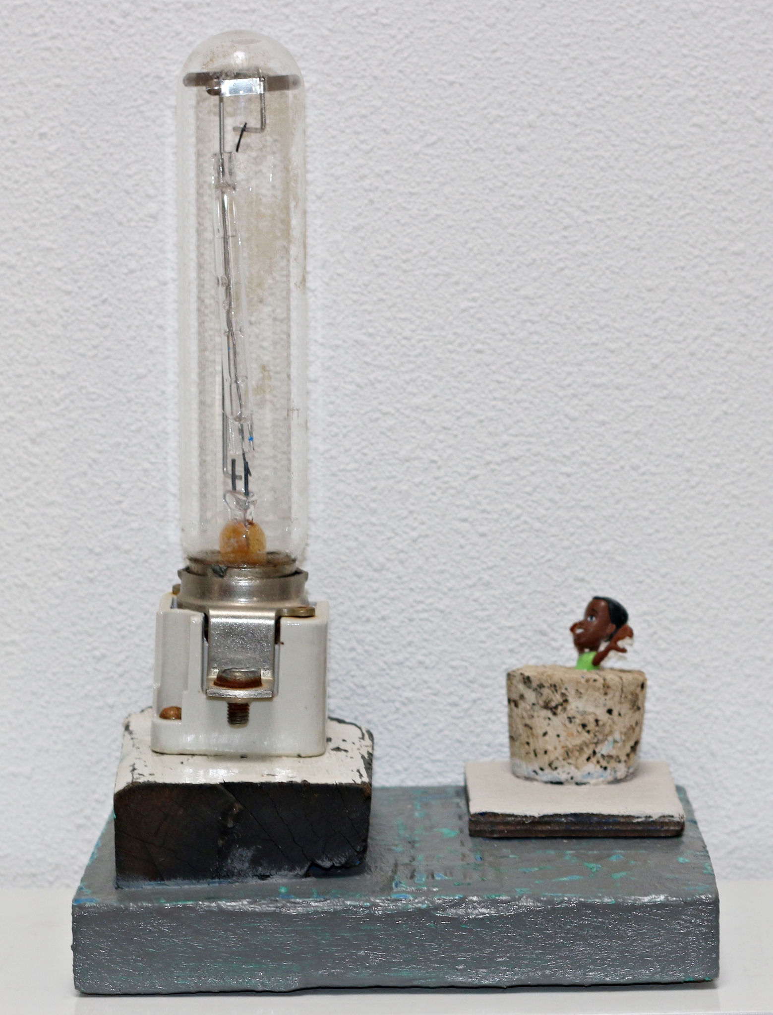 Figuratieve sculptuur uit gevonden materiaal van de Griekse eilanden; samengesteld uit hout, glas, metaal en kunststof