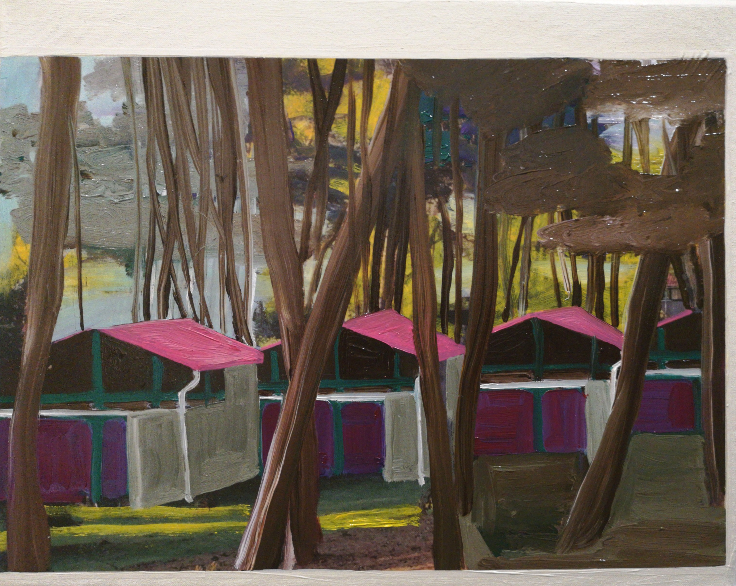 Schilderij Tuin Olieverf Natuur Bos Buiten Huisjes