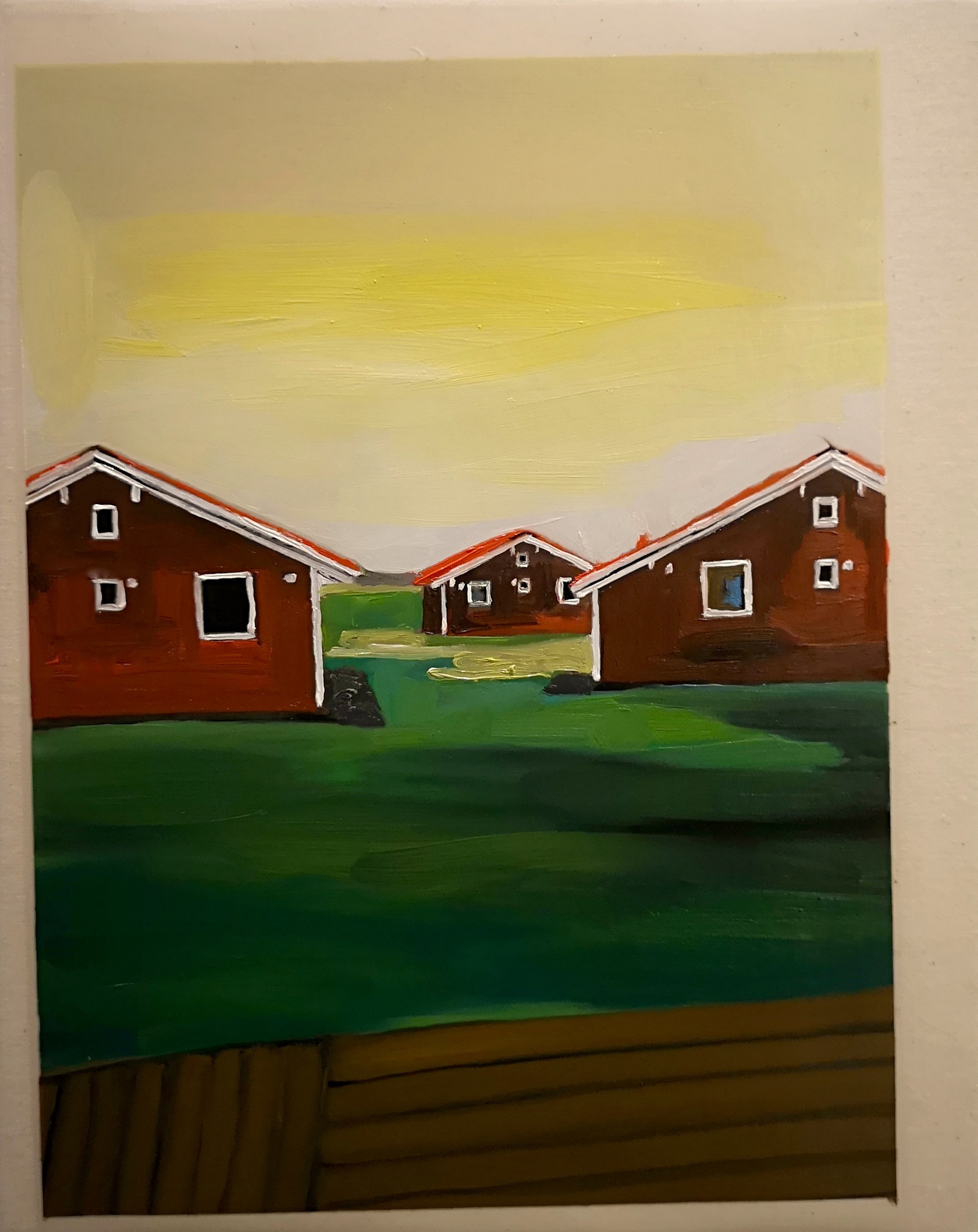 Schilderij Hout Olieverf Natuur Herhaling Huisjes