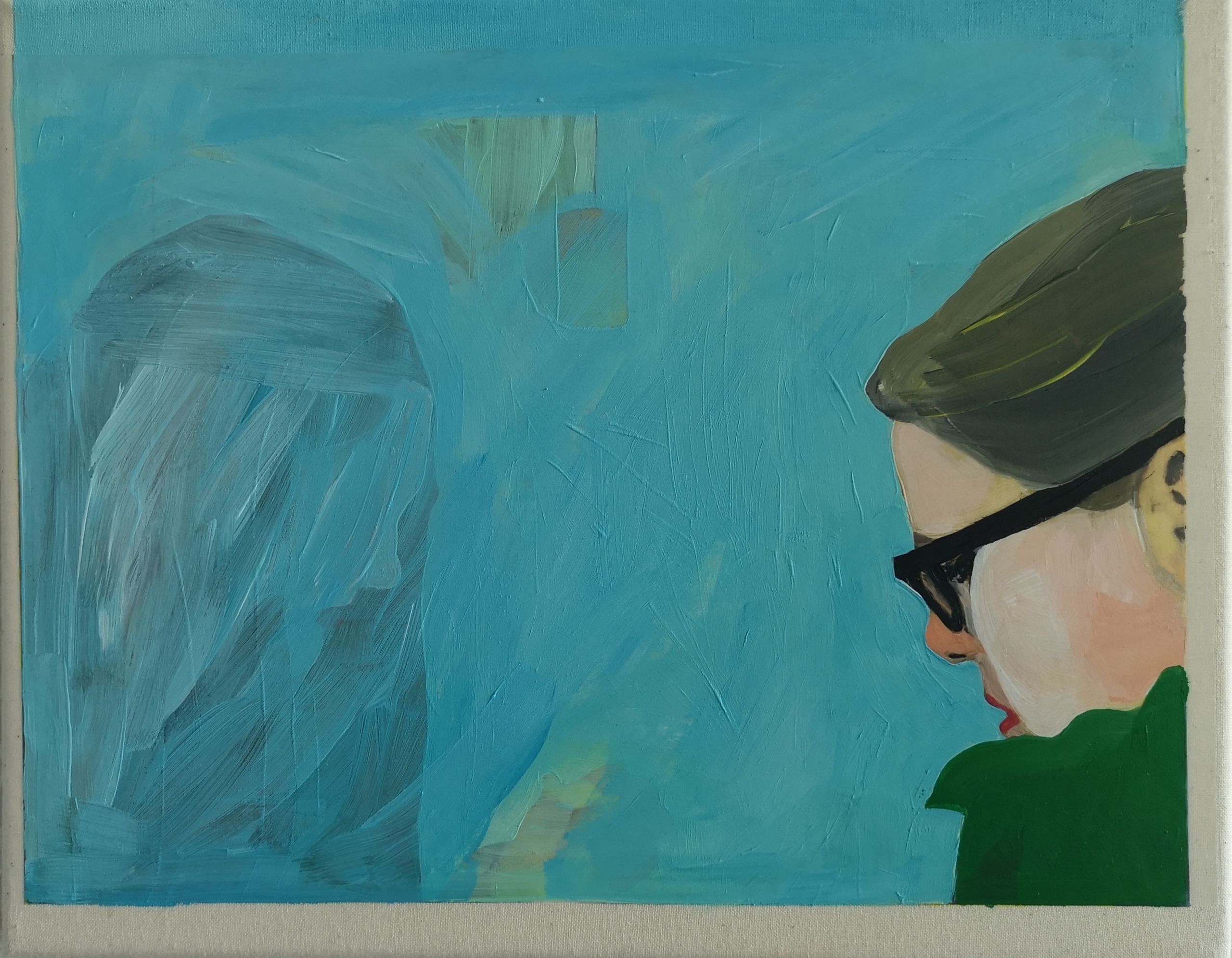 Schilderij Blauw Vrouw Olieverf Zelfportret