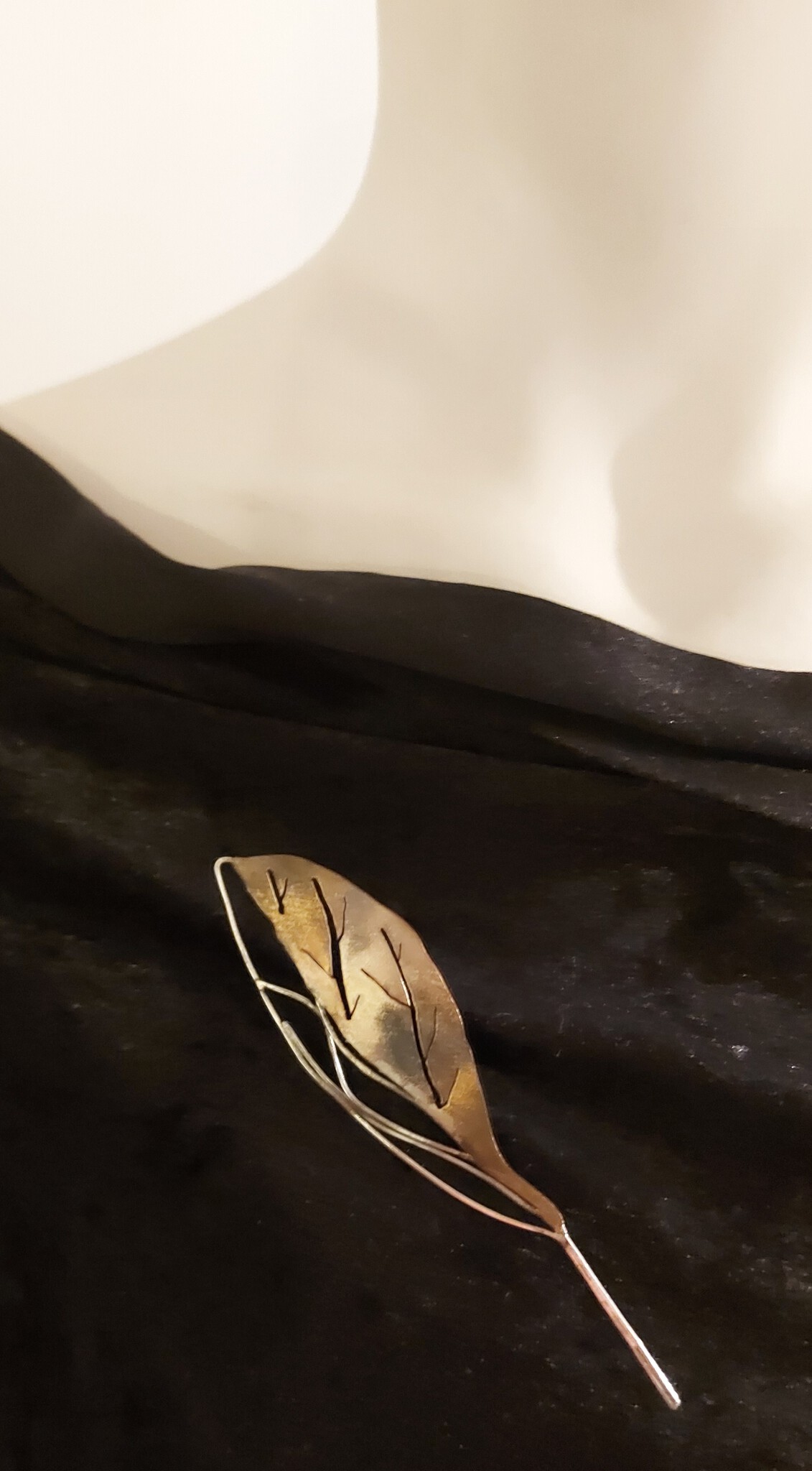 Herfstblad, tombak en zilverdraad