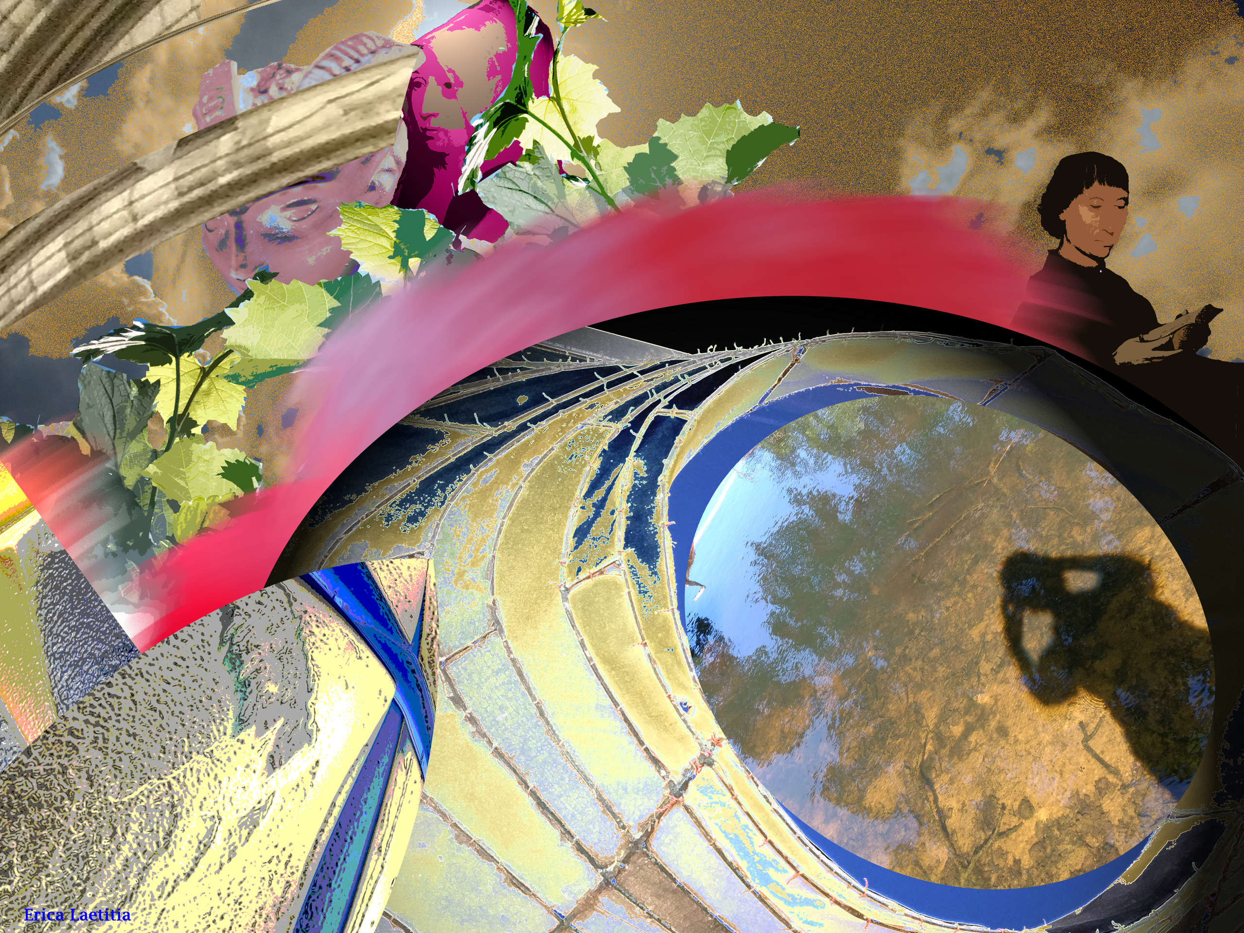 Dit zelfportret is een goede representant van mijn aluprints: diverse digitaal bewerkte foto-elementen die samen één verhaal vertellen, met of zonder gedicht.
