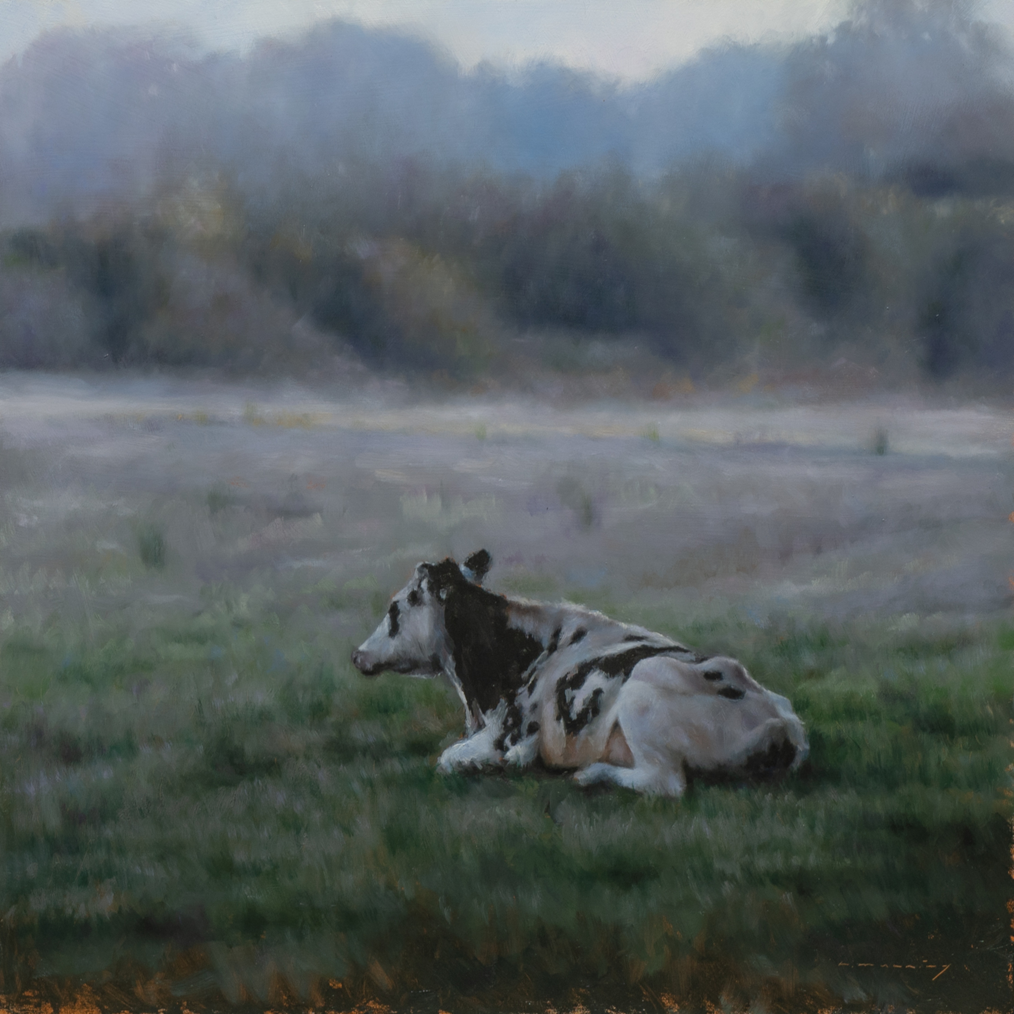 Figuratief Landschap Koe Realistisch Olieverf Oilpainting Natuur Painting Cow Robert Landscape Realism Figurative Mist Artist Schilderen Nature Ochtend Contemporary Morning Munning
