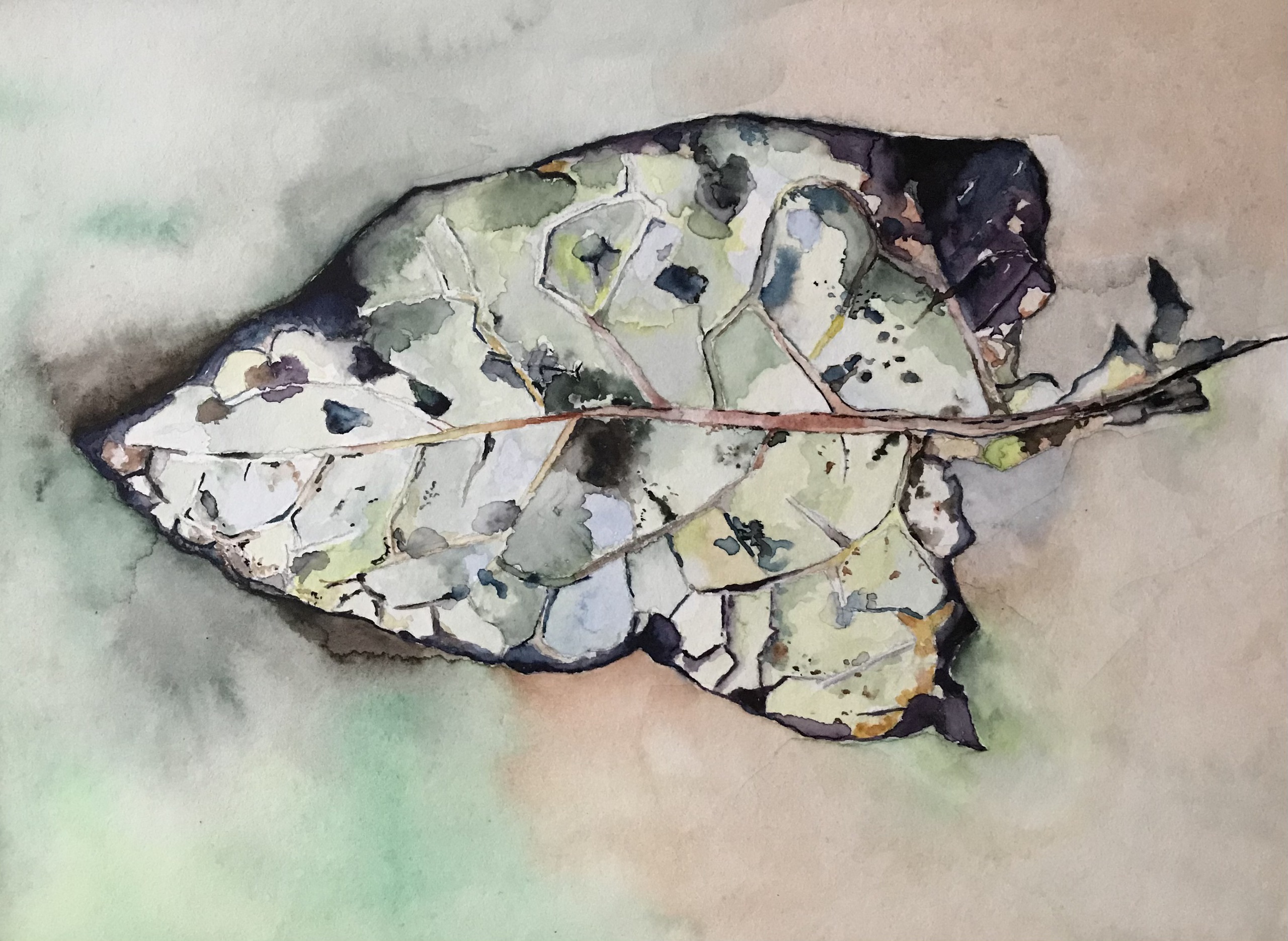 Blad in de herfst. Aquarel.