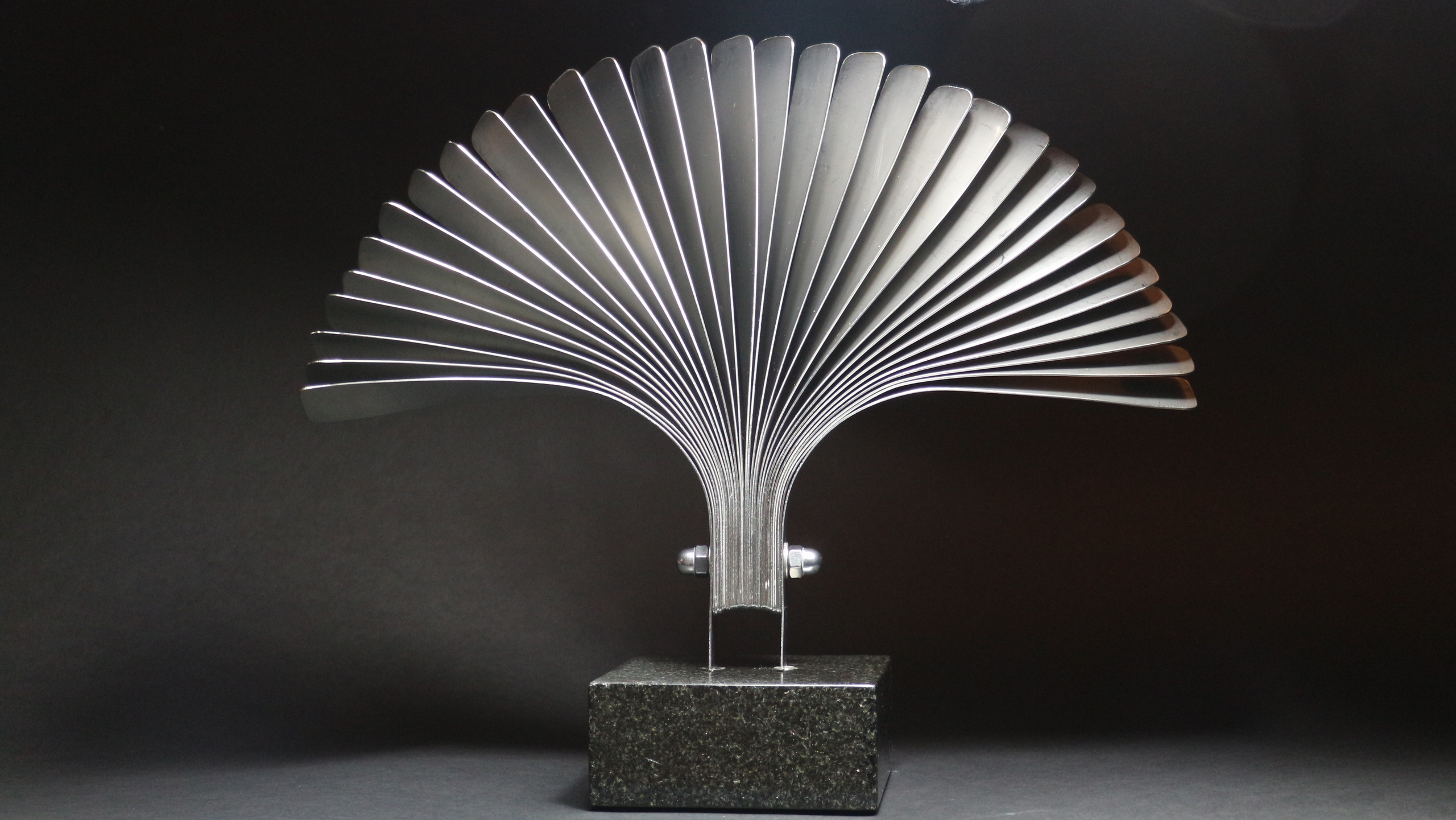 Het kunstwerk is gemaakt van 3 cm brede en 1 mm dikke RVS strips. De vorm lijkt op een waaier, maar ook op een blad van de Ginkgo Biloba. Het werk is gemonteerd op een hardstenen sokkel van 12x 12 cm. Het werk kan buiten staan.