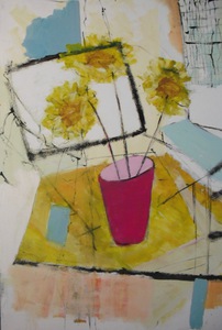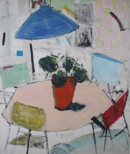 Marcel laat in zijn recente werk de andere weg zien die hij is ingeslagen. ,,In tegenstelling tot mijn eerdere werk, dat heel dicht bij de realiteit lag, vertaal ik nu wat ik waarneem naar mijn eigen werkelijkheid. Het is eigenlijk een vereenvoudigen van die realiteit, tot wat voor mij de essentie is. In die zoektocht spelen kleur en compositie een hoofdrol’.
