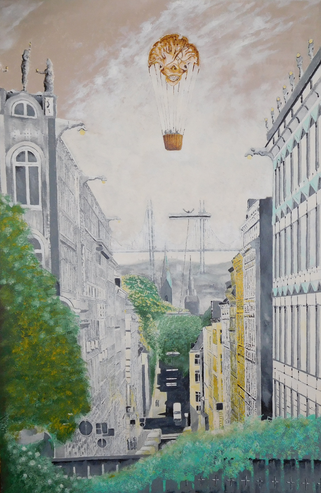Stijlelementen uit het symbolisme en het futo-realisme vormen mijn inspiratie. Fantasie en werkelijkheid komen tot leven in kleurrijke straattaferelen, vreemdsoortige bouwsels en perspectivische vergezichten.