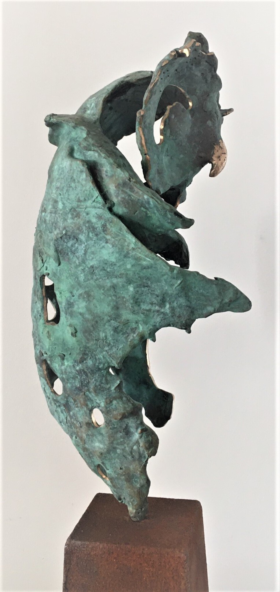 Abstract Brons Groen Gepatineerd Tuinbeeld Uil Spritueel Abstaherend Inspirerend Binnenbeeld Ger Gerrie Hoogveld