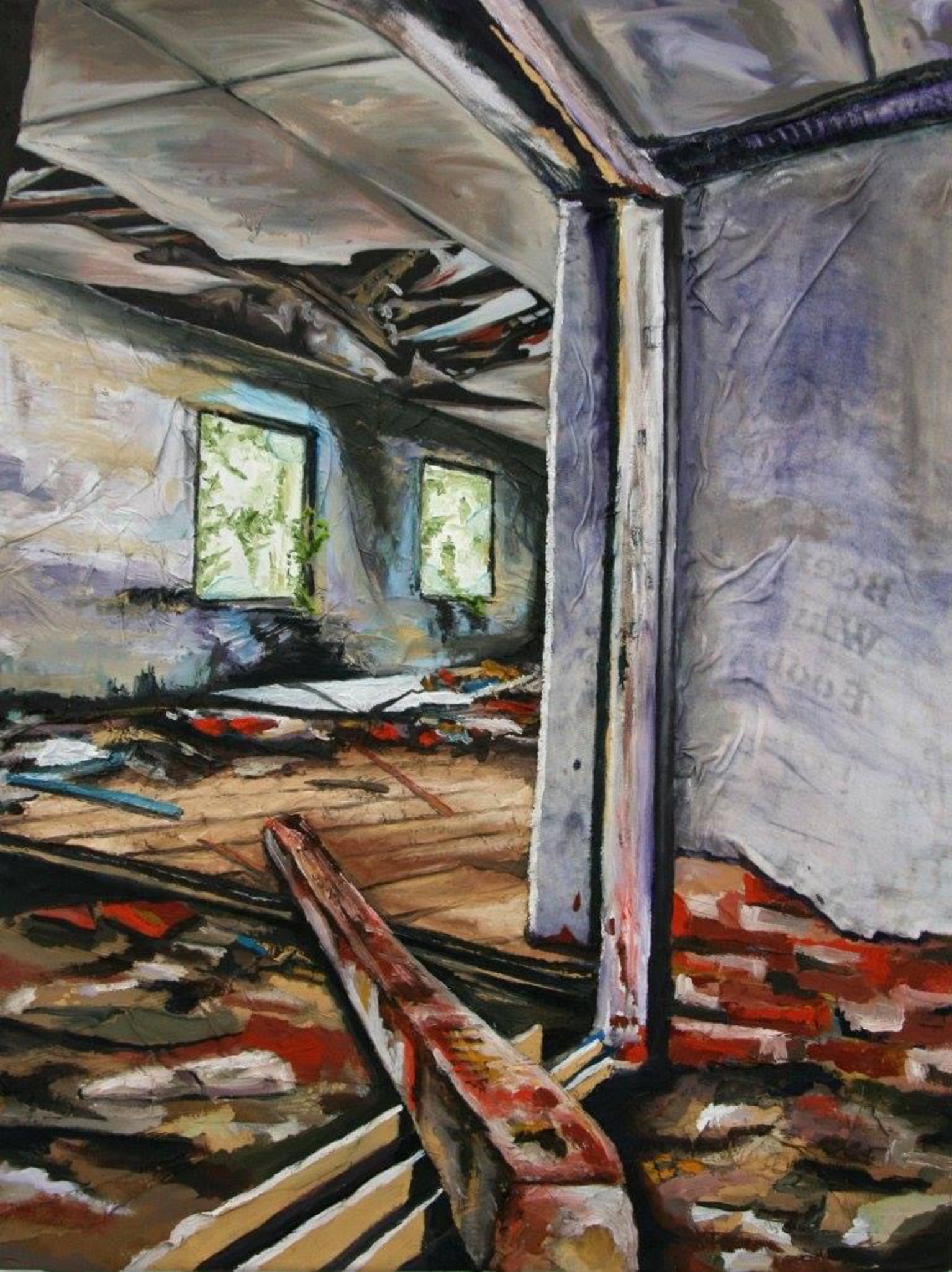 MAARTEN DEDROOG (*1987, Bree Belgie) Oude panden waarvan de buitenkant schreeuwt om verkend te worden, gebouwen die al jaren verlaten zijn en waar de toegang verboden is. Hier en daar neemt de natuur het over. Het is in deze panden waar de zoektocht naar sporen uit de geschiedenis voor mij start. Tevens is er de liefde voor diverse materialen. Elk materiaal prikkelt de geest en laat suggesties van realiteit ontstaan. Als motief voor mijn werk worden voorbeelden genomen uit de locaties die ik tegenkom tijdens mijn „Urban Exploring tochten‟. Volg mijn voetstappen en laat deze u meenemen in mijn zoektocht naar de stedelijke habitat van de mens.