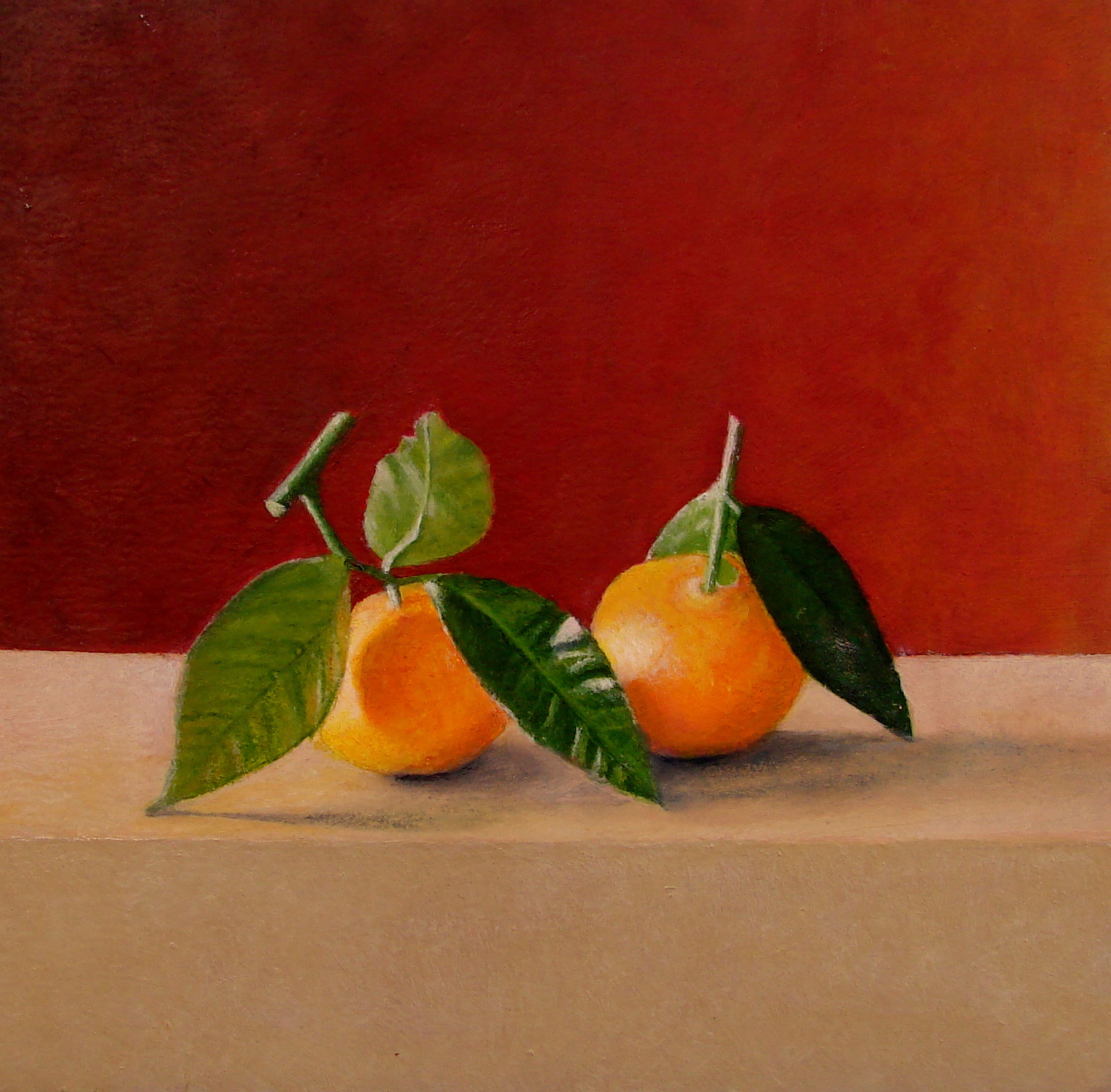 Het werk is olieverf op paneel. De afmetingen met lijst zijn 24,5 x 24,5