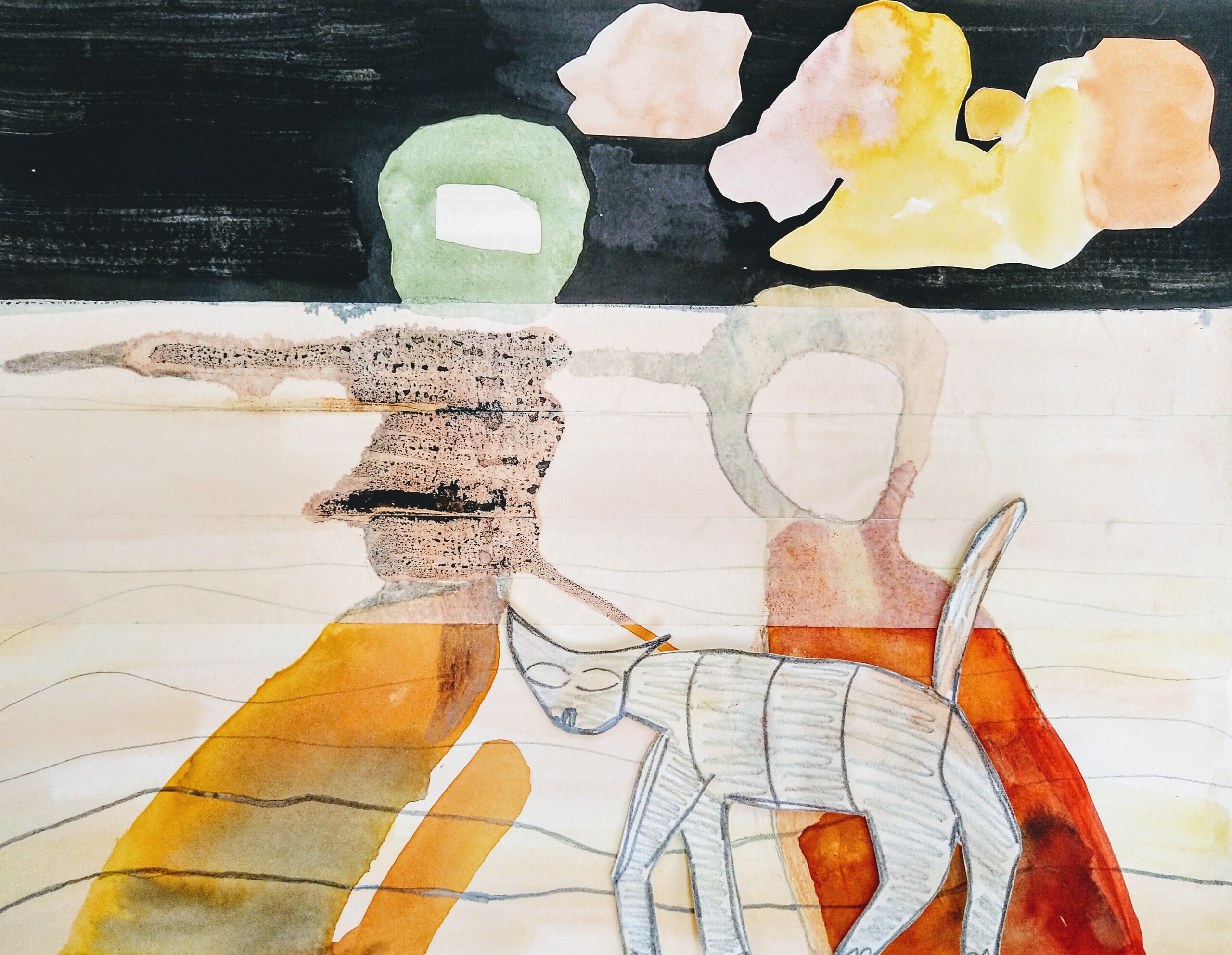 Collage, gemengde technieken. NIET TE KOOP