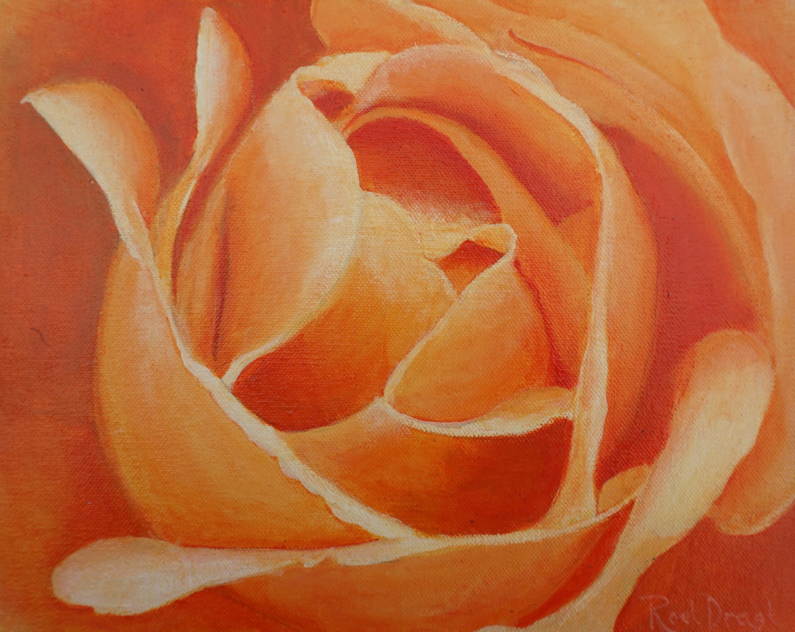 ROOS in eigen tuin. Acryl op doek. 24 x 30 cm