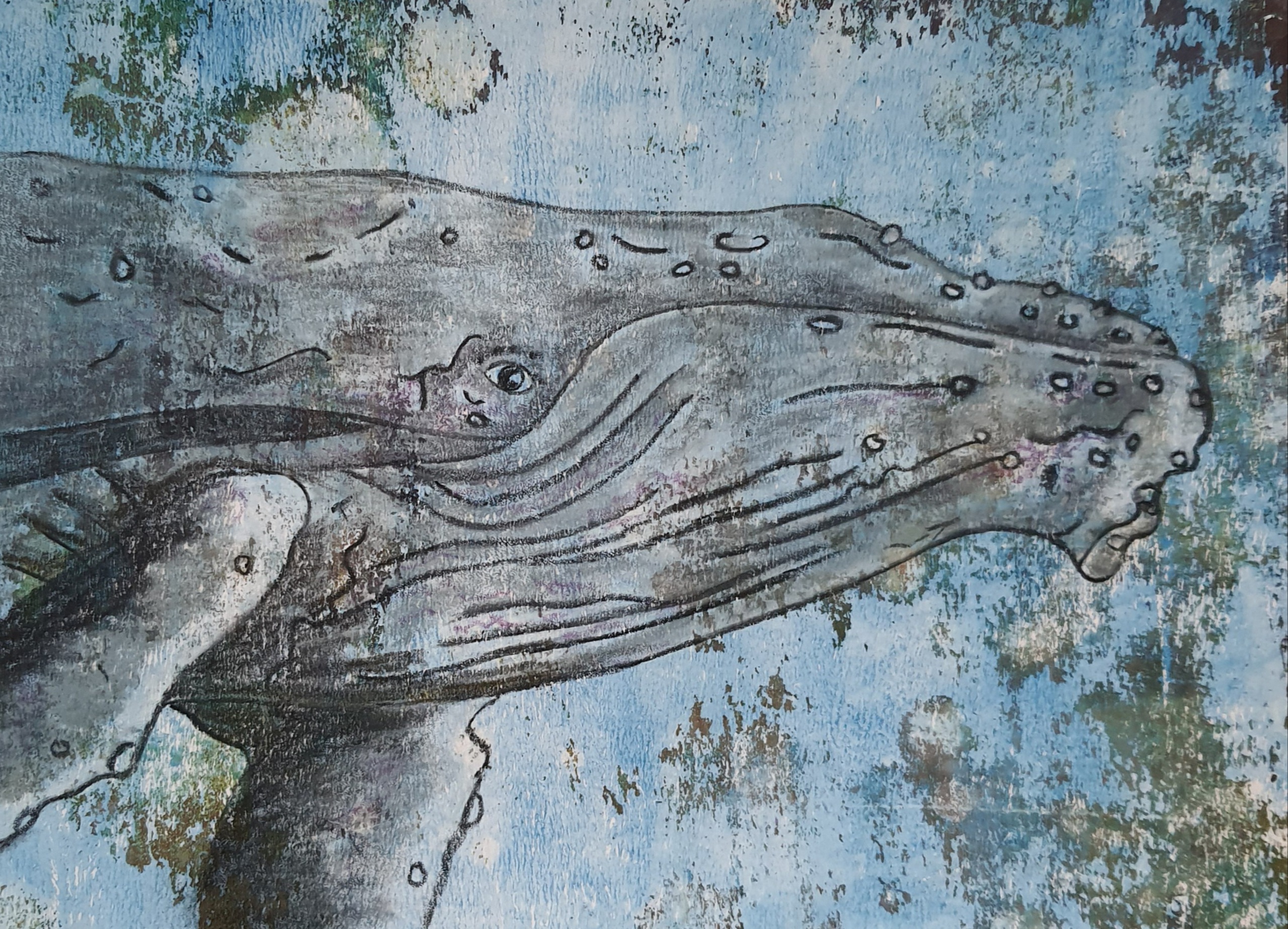 Zee Blauw Dier Oceaan Monoprint Walvis Acrylverf