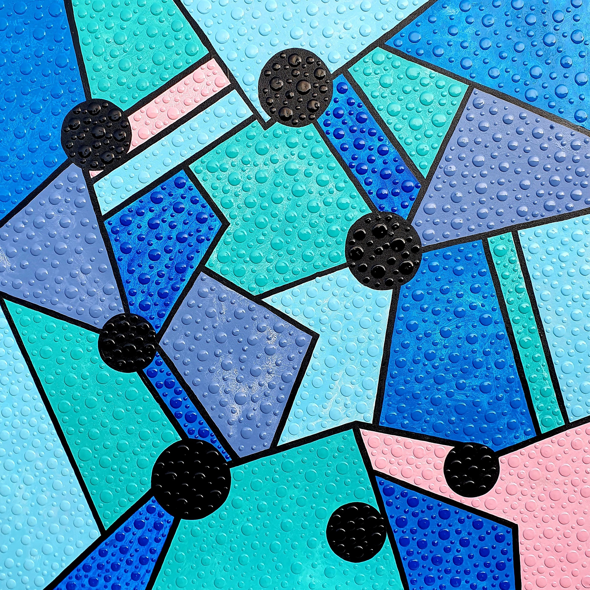 Dots, blobs in diverse kleuren op een achtergrond met gelijke kleuren. Doordat de dots op het schilderij liggen, krijg je een heel mooi 3D effect. Afgewerkt met een hoogglans vernislaag. Formaat is 100 x 100 x 2 cm. Rechtstreeks van de kunstenaar, koper is de eerste eigenaar. Handgesigneerd en met echtheidscerificaat. Als het schilderij verstuurd moet worden, dan wordt het goed verpakt in bubbeltjesplastic, piepschuim platen en een kartonnen doos.