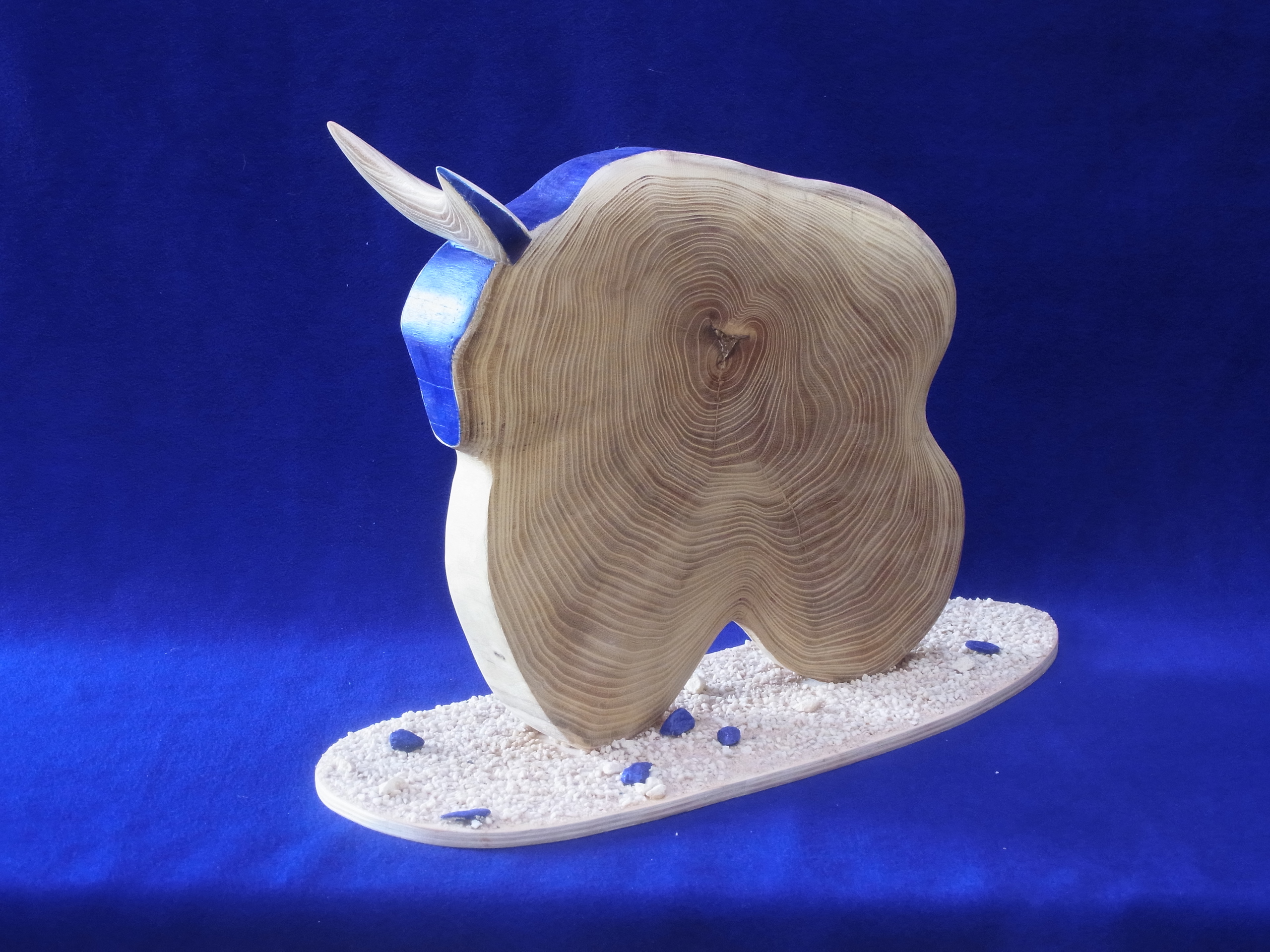 Deze stier van acaciahout straalt kracht en onverzettelijkheid uit............This bull made of acacia wood radiates strenght and stubbornness.