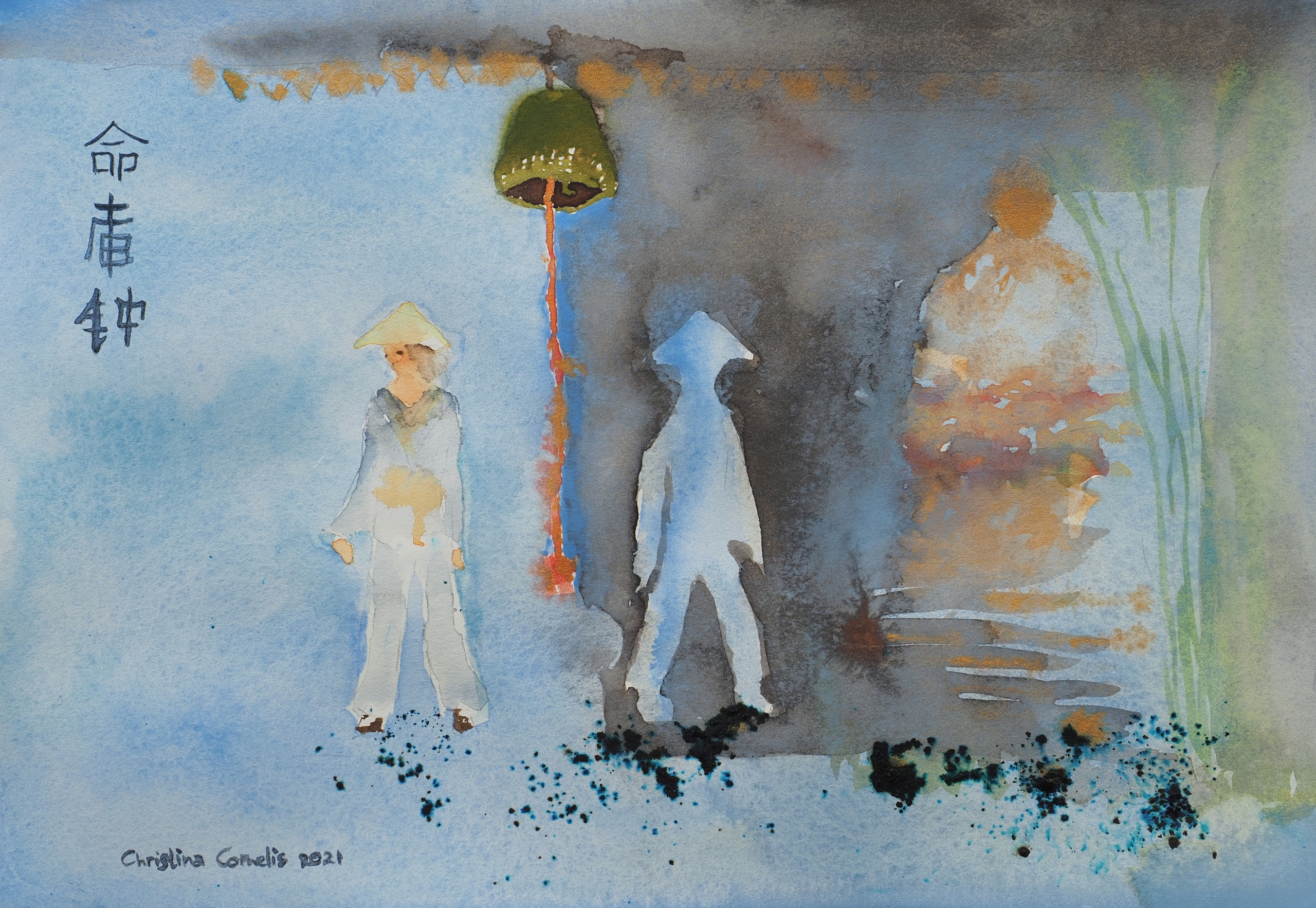 Gouache Chinese Mixed Media Watercolour Walk Ink Step Bell Philosopher Bister Whom Tolls Fifth