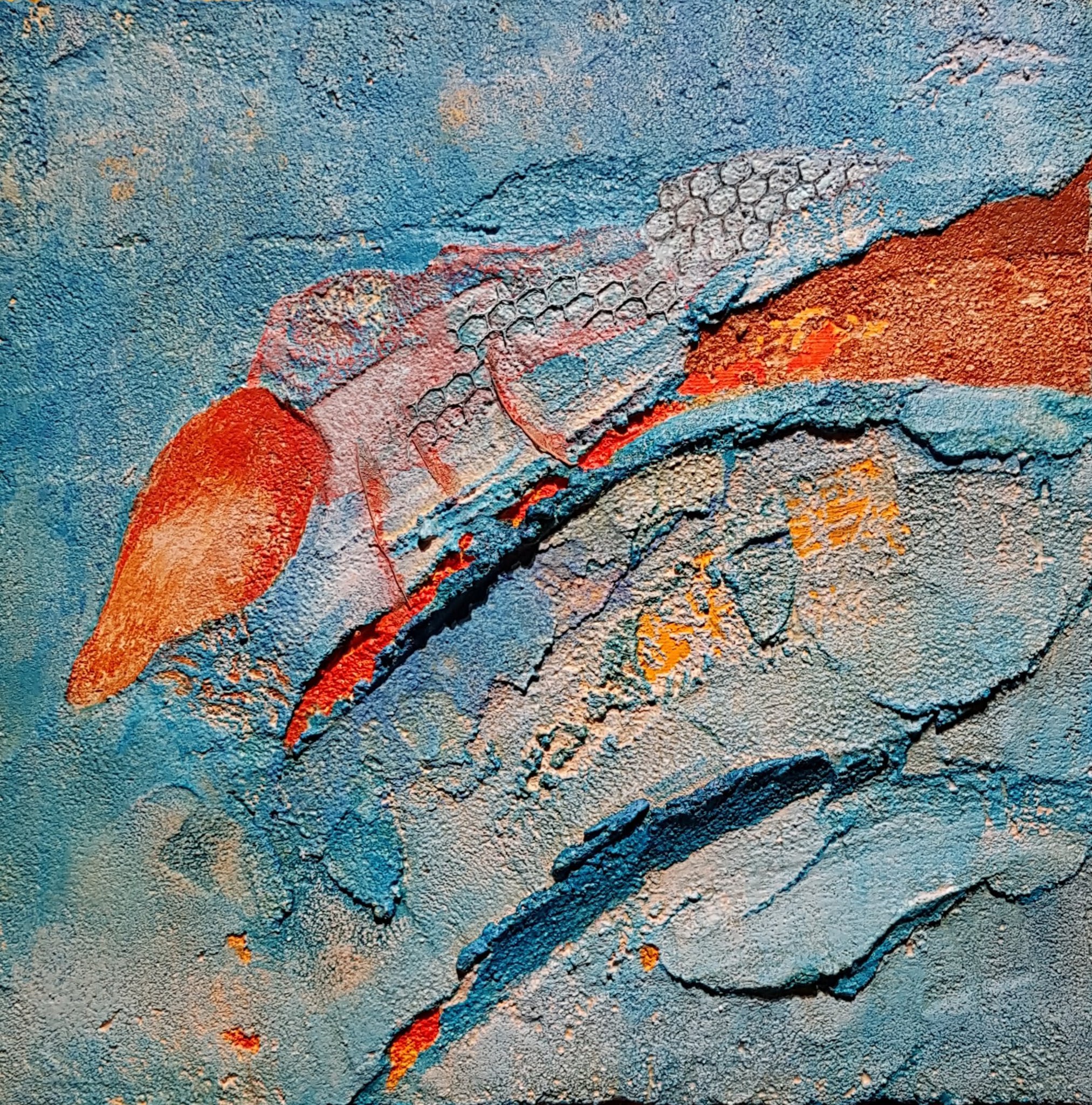 Blauwtinten Mixedmediaart Cementartwork