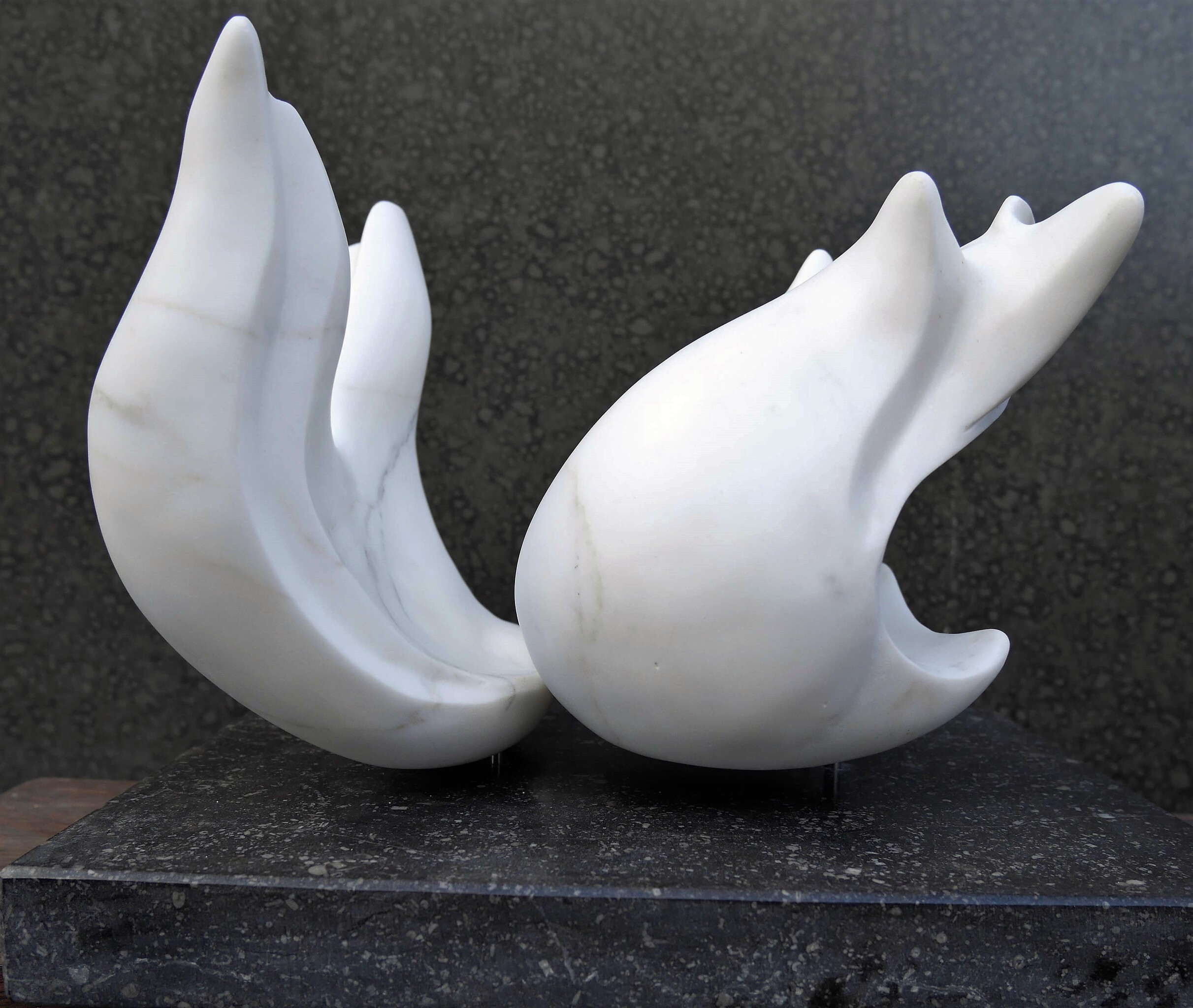Mijn beelden zijn in brons figuratief en in steen vaak abstract. Inspiratie vind ik in de dans en de natuur.