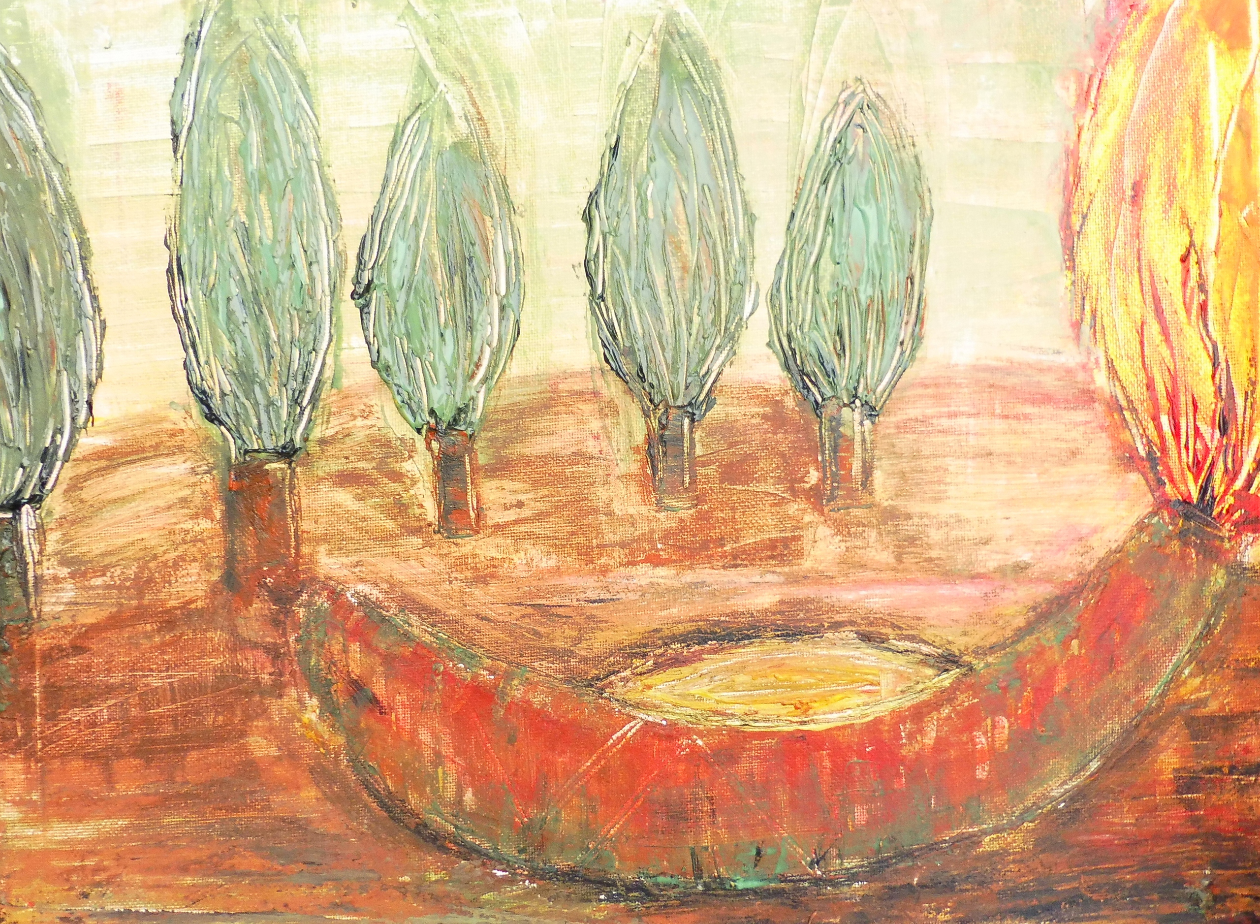 De wijze maagden hielden hun olielampen gevuld. Olie staat voor de Heilige Geest. Laat Gods vuur branden in je hart. Goud staat voor de overwinning, die Hij reeds heeft behaald. Ik heb alvast lekker gewerkt met een paletmes.