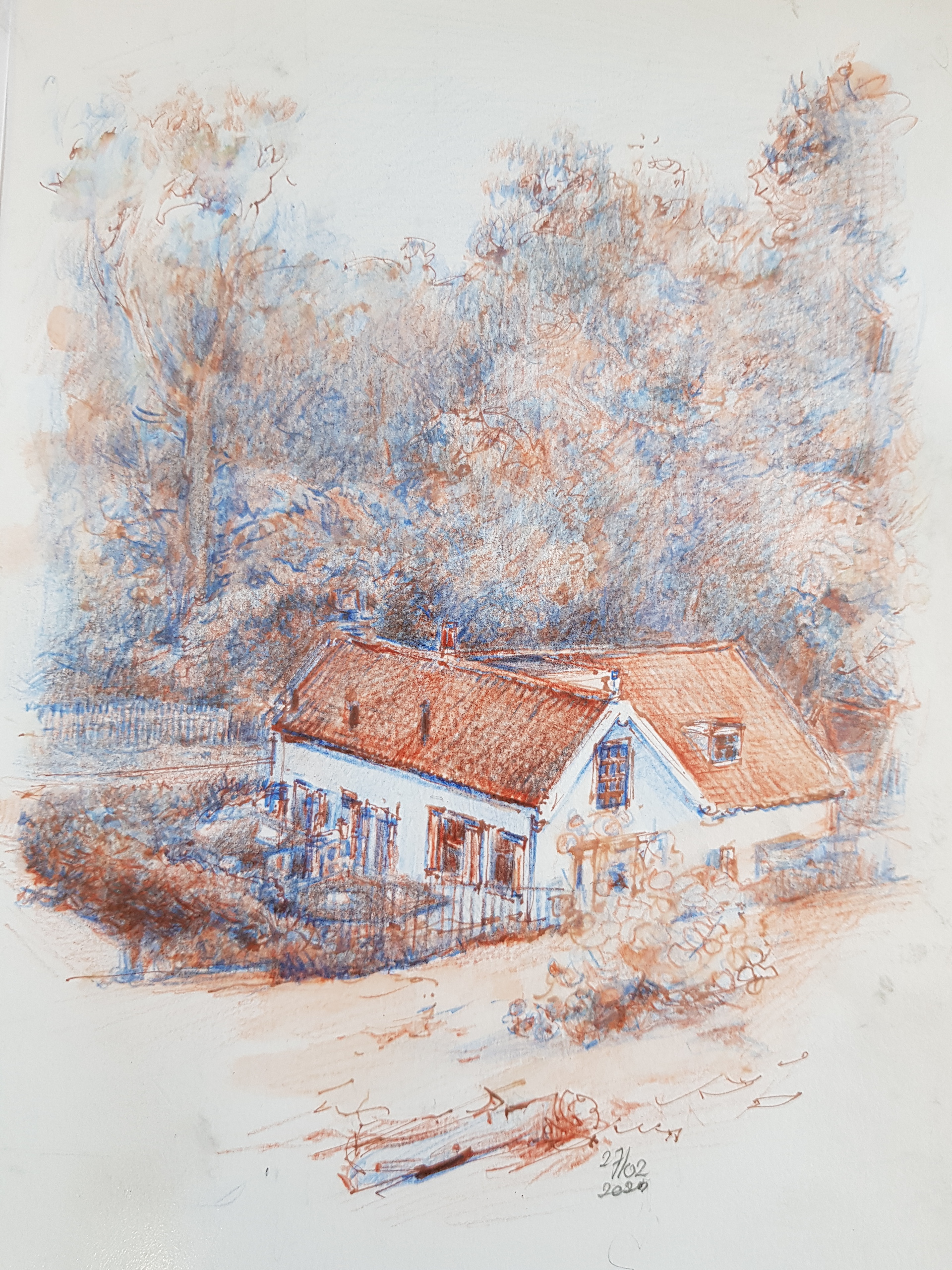 Historisch Huis Aquarelpotlood Realistisch Historic House Watercolor Pencil Realistic