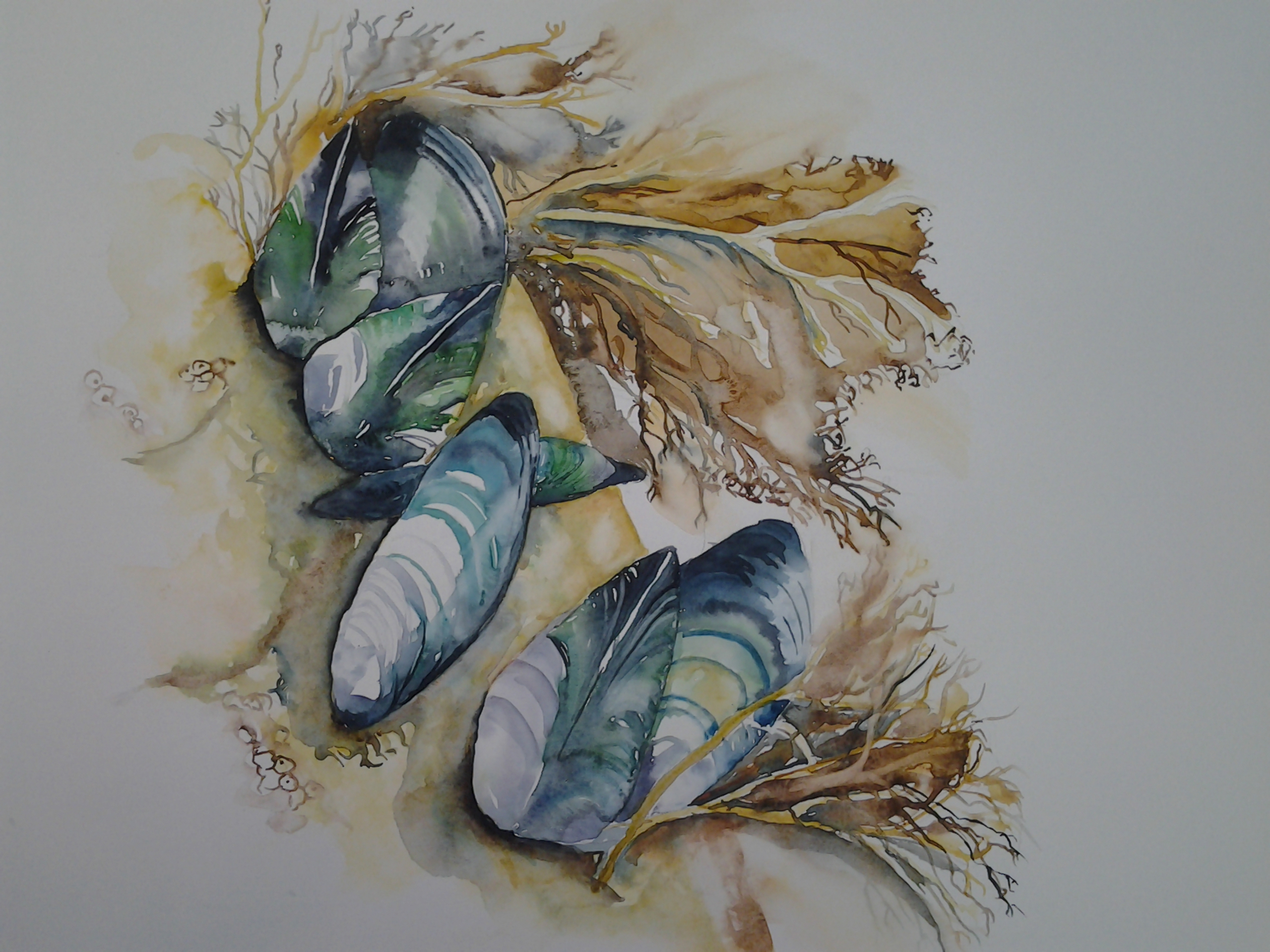Aquarel op 300 g papier. De kleuren van die mosselen zijn indrukwekkend !
