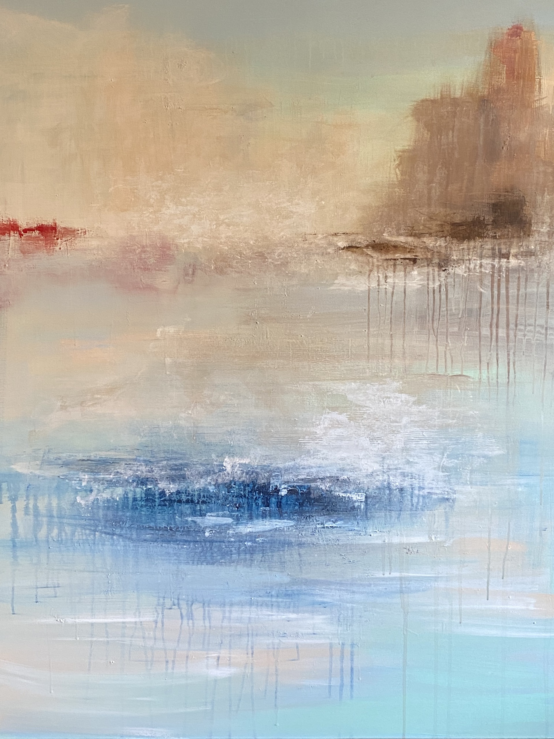 Wat je ziet zijn veel dingen, blauw water en bergen. Stel je voor wat je zou willen zien, ik hoop dat je je gelukkig en vrij voelt en de hele wereld aan kunt. Ik heb acryl en gesso gebruikt. De afmetingen van de schilderijen H 120 cm x B 100 cm x D 4 cm. Klaar om op te hangen. Gesigneerd Gewicht: 4 kilo.