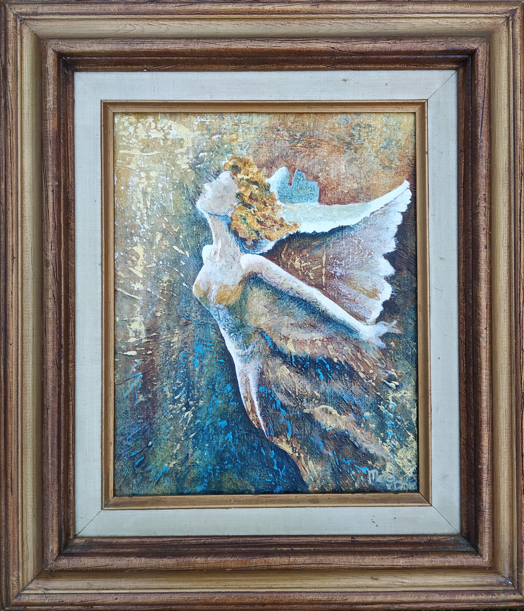 Blauw Oker Goud Klein Lijst Engel Engeltje