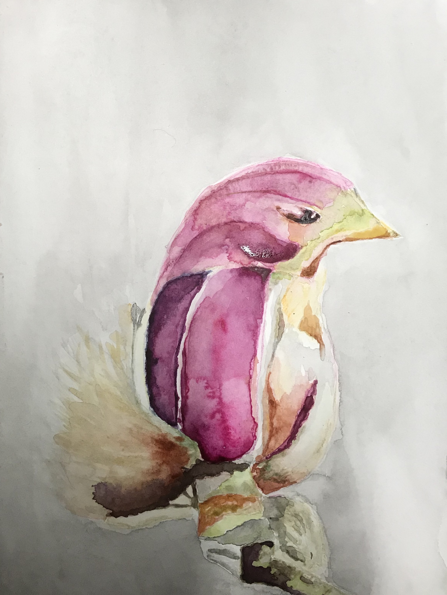 Aquarel van bloem in de vorm van een vogel.