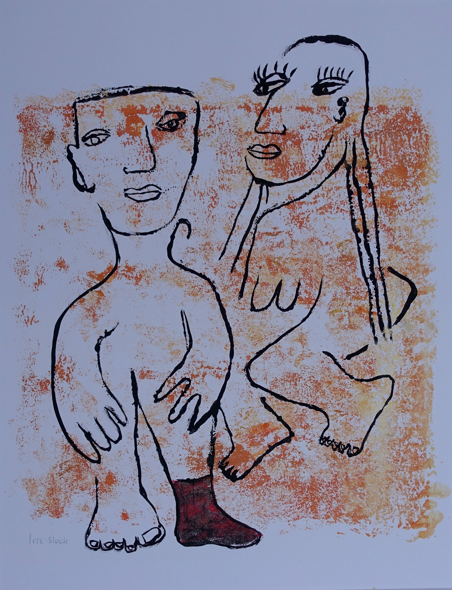 Over liefde en in de wolken zijn. Dit is een monotype en ingelijst.