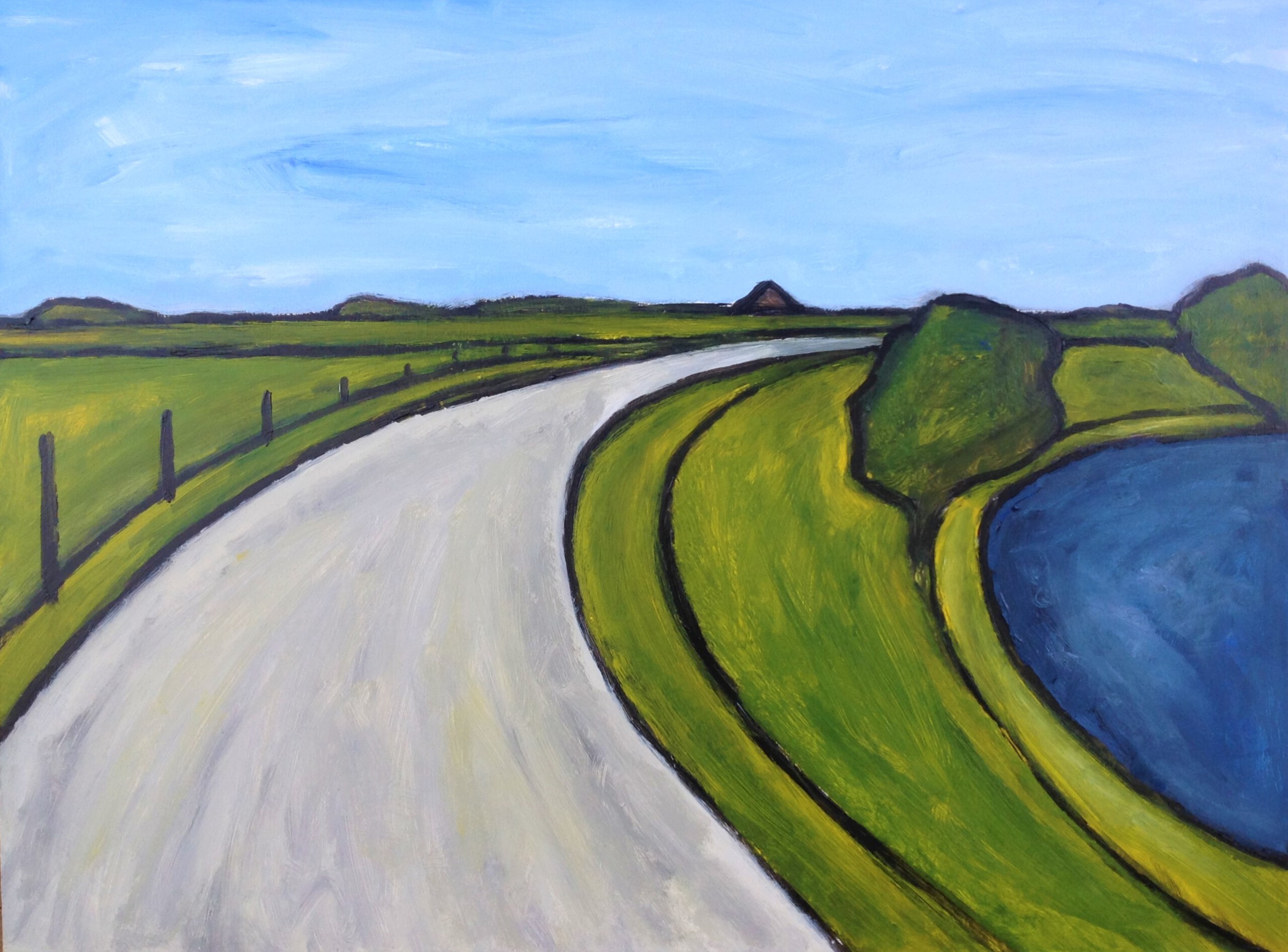 Derde serie Westfries werk: een serie van zeven heldere schilderijen die vanuit dezelfde weg verschillende richtingen laat zien. 55 x 75 cm.