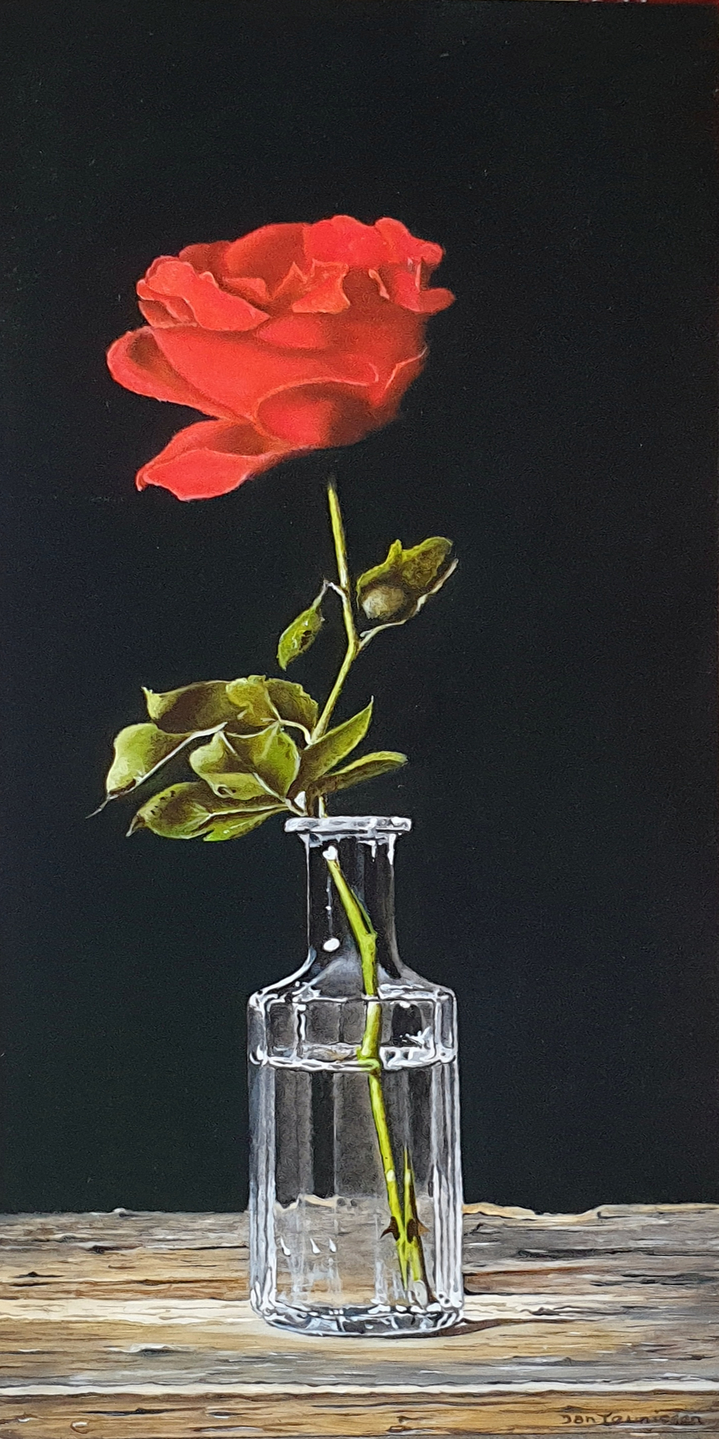 Vaasje met rode roos